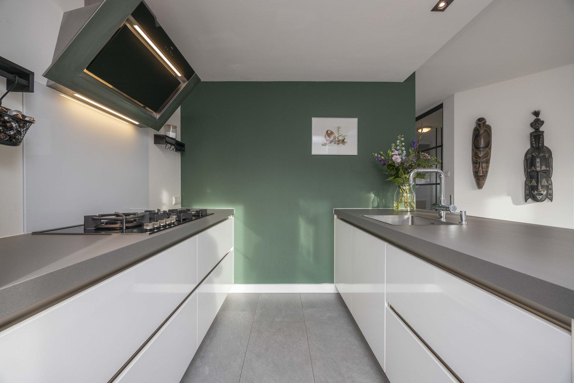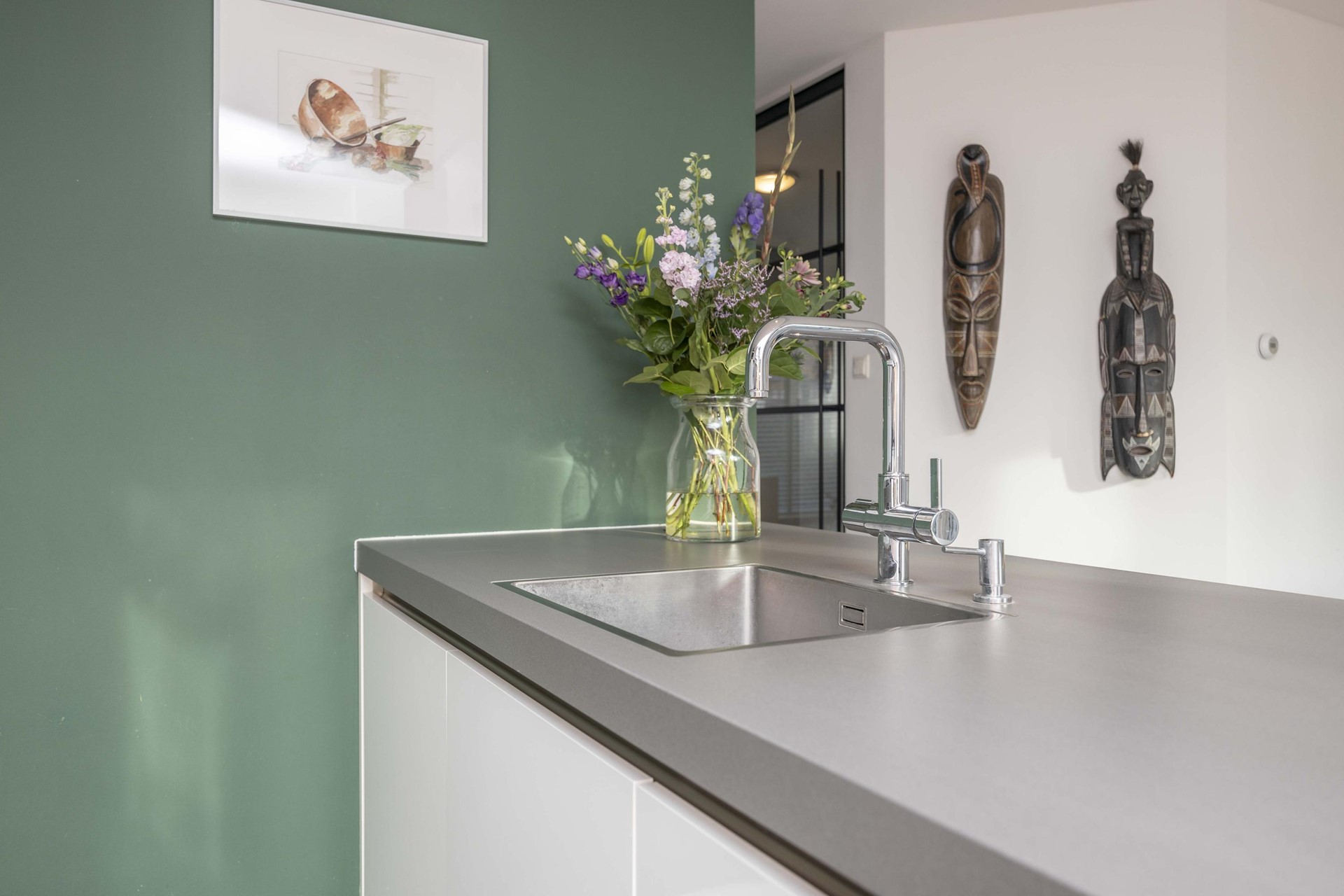 De keuken vormt het hart van het huis: modern, stijlvol en ontworpen voor wie graag kookt én geniet. Het royale spoeleiland nodigt uit tot samenzijn, borrels en lange gesprekken terwijl er met liefde gekookt wordt.