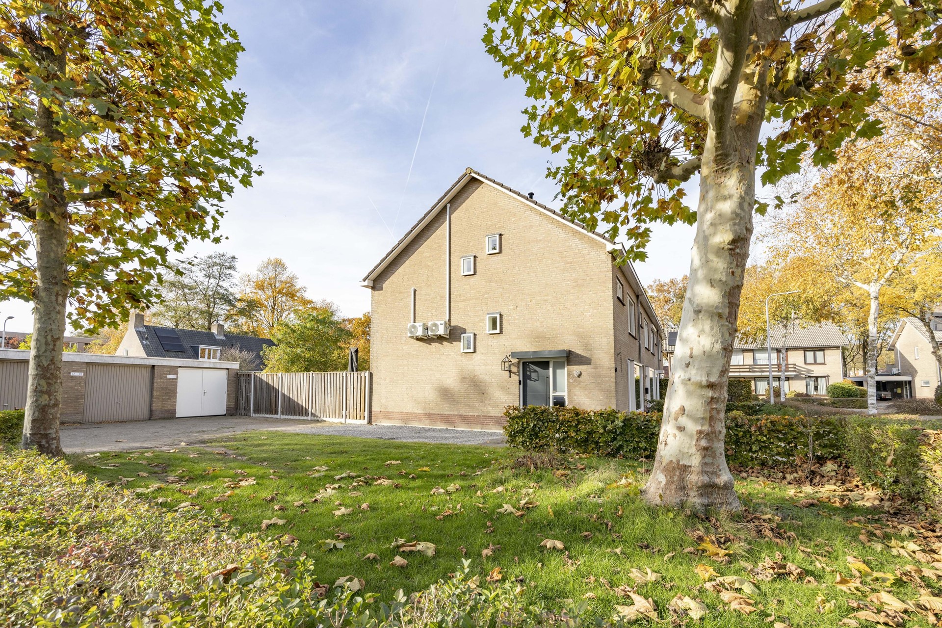 De vrijstaande garage, eveneens voorzien van airco, biedt extra opslag of werkruimte. En de oprit? Die biedt plek aan maar liefst vier auto’s — uniek voor deze omgeving.