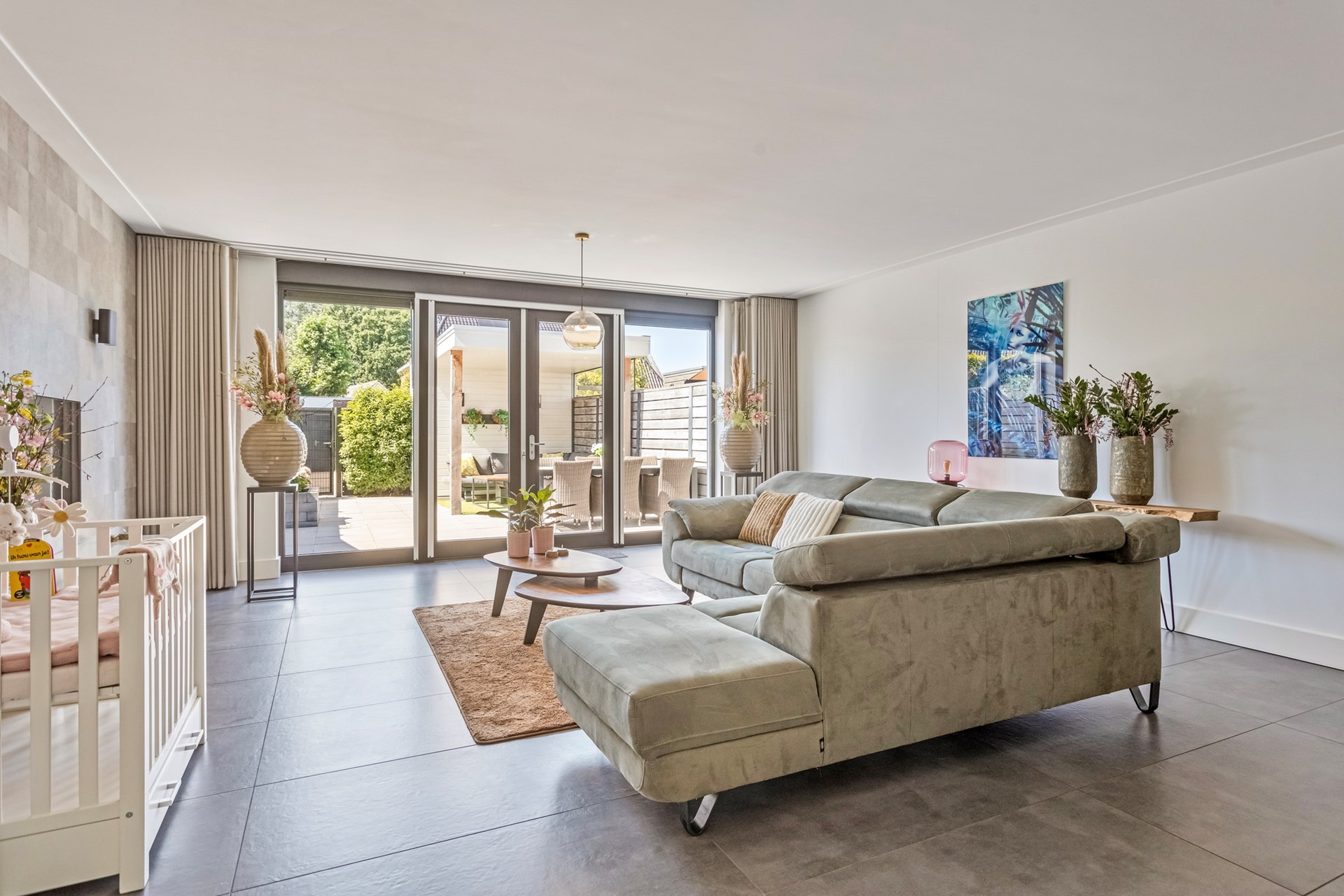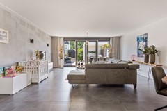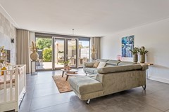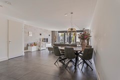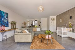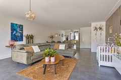 Woonkamer: Bij binnenkomst valt meteen op hoe ruim deze living is. Hier is ruimte genoeg voor een royale zithoek en een gezellige eettafel. De openslaande tuindeuren in de achtergevel, zorgen voor veel lichtinval en een gezellig contact met de achtertuin. Vanuit de living heb je ook toegang tot de berging onder de trap naar de eerste verdieping.