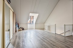 Met een vaste trap bereik je de tweede verdieping van deze woning. Hier bevindt zich nog een verrassing....een extra grote ruimte, te gebruiken als vierde !!! slaapkamer of kantoorruimte of....vul het zelf maar in. De dakkapel aan de voorzijde van de woning zorgt voor een volwaardige tweede verdieping. Ook deze verdieping is netjes afgewerkt en voorzien van een "houtlook" laminaatvloer. Je vindt er ook de aansluitingen voor de wasmachine en de droger. Wil je echt alles uit deze ruimte halen dan kun je hier zelfs twee slaapkamers creëren!