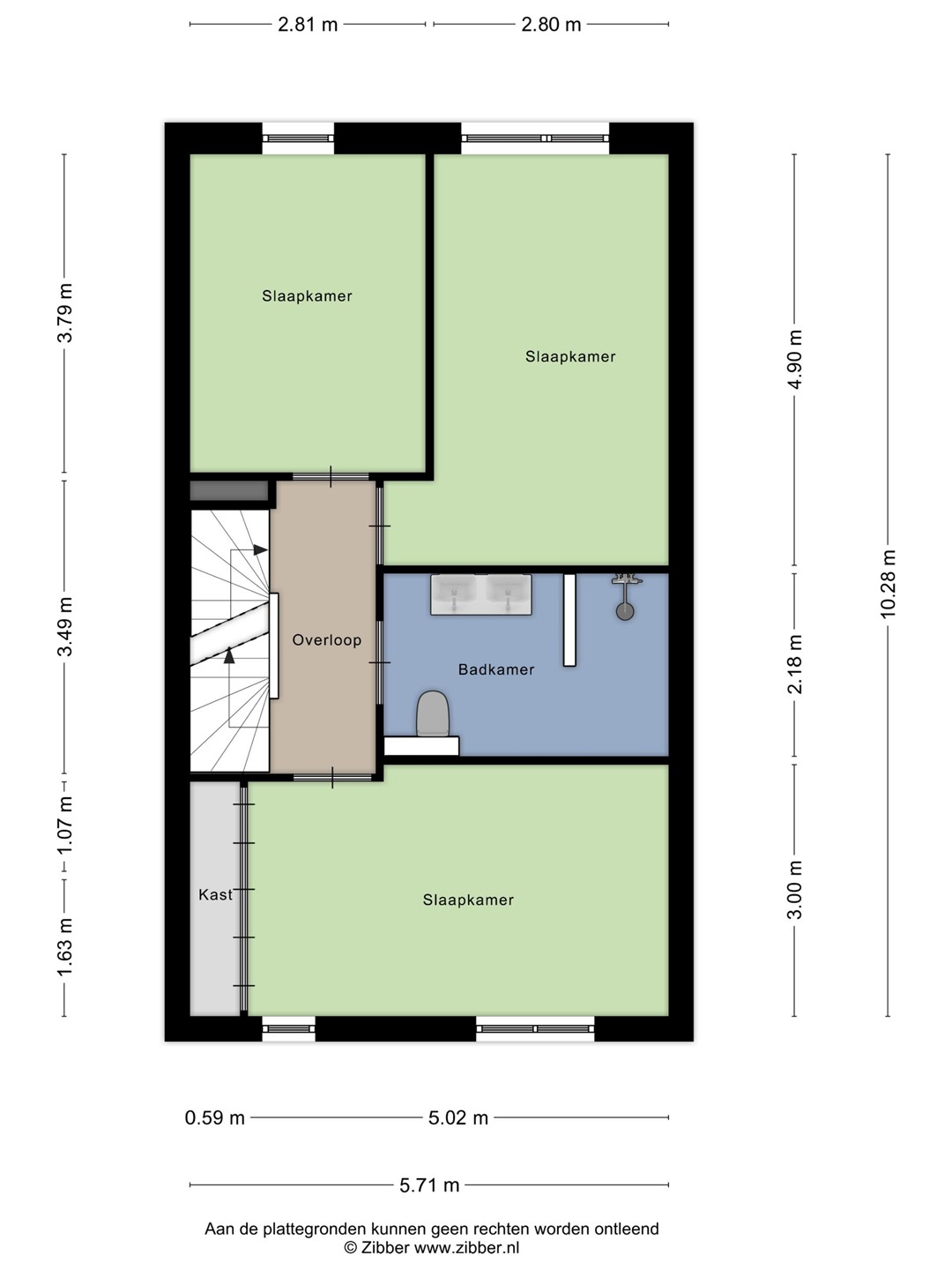 Via de vaste trap bereik je de eerste verdieping van de woning. De overloop geeft toegang tot de drie slaapkamers en de badkamer op deze verdieping. De "masterbedroom" bevindt zich aan de voorzijde van de woning en heeft een grote inbouwkastenwand. De overige 2 slaapkamers vind je aan de achterzijde van de woning. Alle slaapkamers zijn netjes afgewerkt en voorzien van een "houtlook" laminaatvloer die mooi doorloopt naar de overloop. De badkamer bevindt zich in het hart van de woning is strak gestuct en gedeeltelijk betegeld. Je hebt er de beschikking over een ruime inloopdouche, twee wastafels die mooi zijn samengevoegd in een wandmeubel, een designradiator en een zwevend toilet. De elektrische vloerverwarming in deze badkamer zorgt ervoor dat je nooit koude voeten hebt.