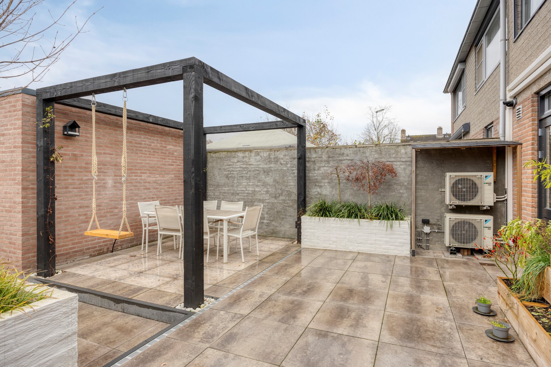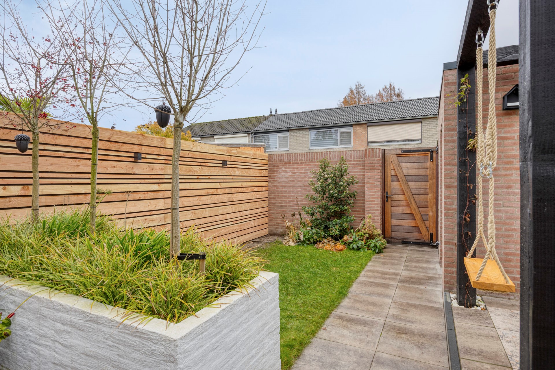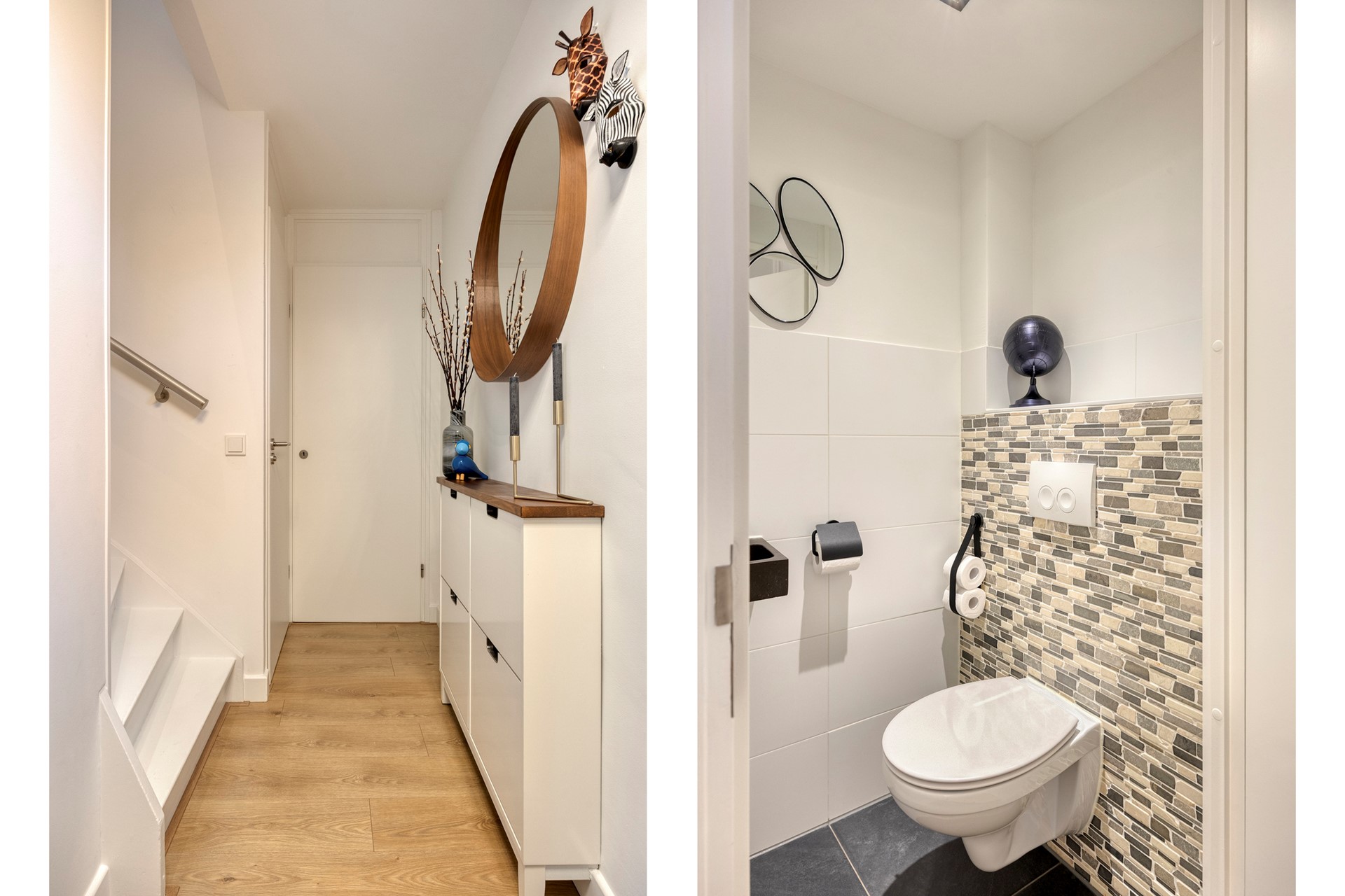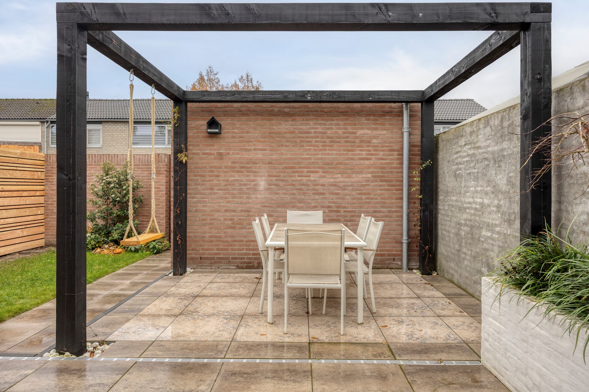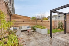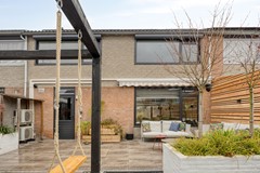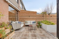 De recent vernieuwde achtertuin straalt rust en gemak uit. Hier geniet u van lange zomeravonden, kopjes koffie in het weekend of een spontaan borreluurtje in het zonnetje. De tuin is onderhoudsvriendelijk én sfeervol: ideaal voor wie graag buiten leeft, maar geen groene vingers hoeft te hebben. De tuin is voorzien van een bewateringsinstallatie, ideaal voor de zomer maanden.
