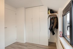 Op de eerste verdieping bevinden zich drie slaapkamers die bijna allemaal hetzelfde royale formaat hebben. Twee liggen aan de rustige achterzijde, één aan de voorzijde. Allen zijn voorzien van rolluiken voor optimale verduistering, koelte én rust. Of u nu een gezin heeft, werkt vanuit huis, een hobbykamer wenst of logees wilt ontvangen: de flexibiliteit is er.