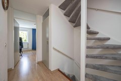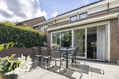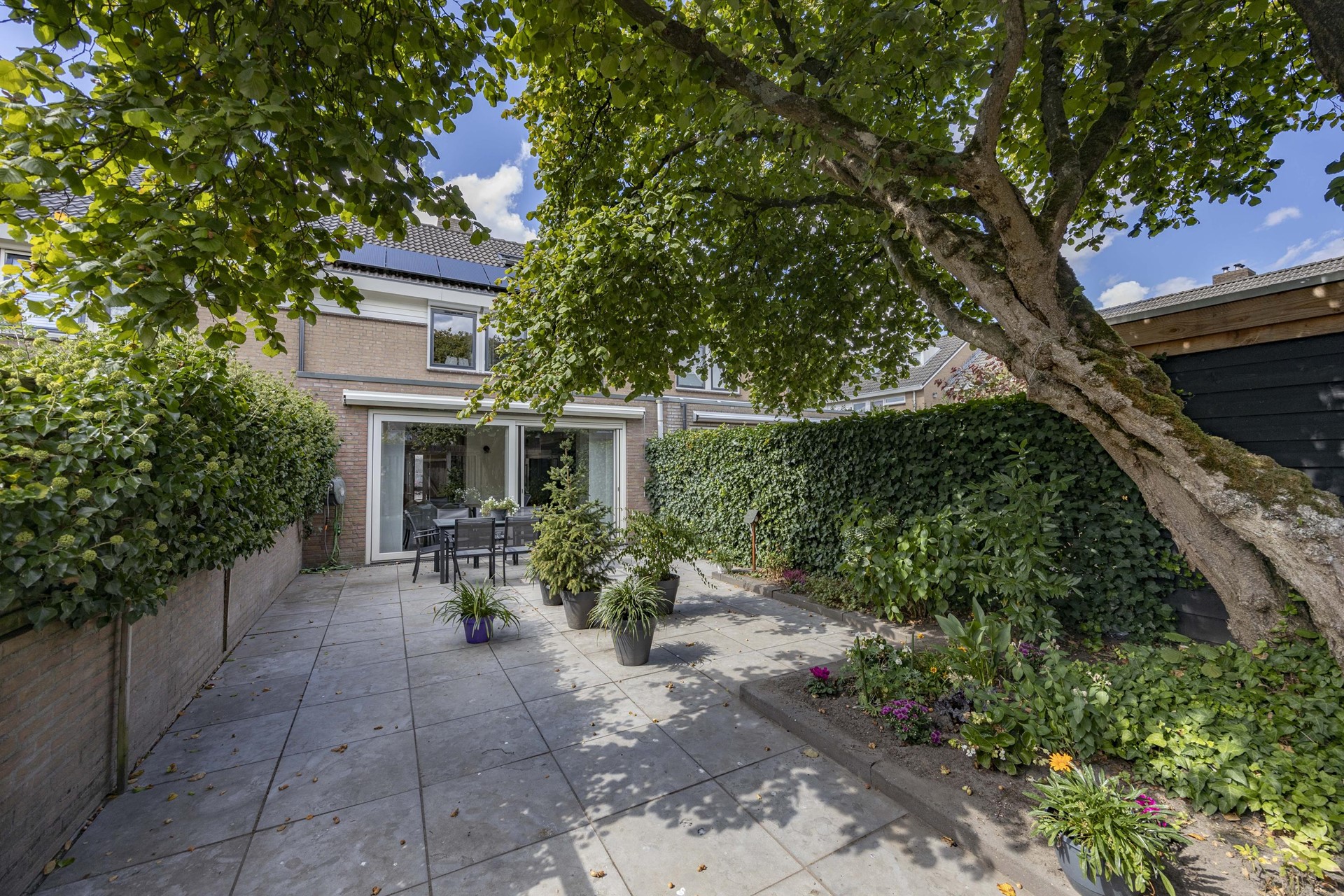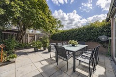 De achtertuin ligt op het oosten en is diep, groen en verrassend ruimtelijk. Grote tegels en een strakke border met een prachtige volwassen boom maken het geheel onderhoudsvriendelijk en sfeervol. Dankzij de 12 zonnepanelen woon je hier niet alleen comfortabel, maar ook duurzaam met lagere energielasten en een groen geweten.