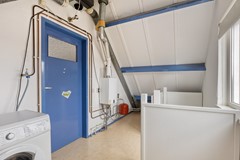 De voorzolder biedt ruimte voor de C.V.-ketel, mechanische ventilatie en aansluitingen voor wasmachine en droger.
