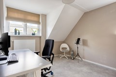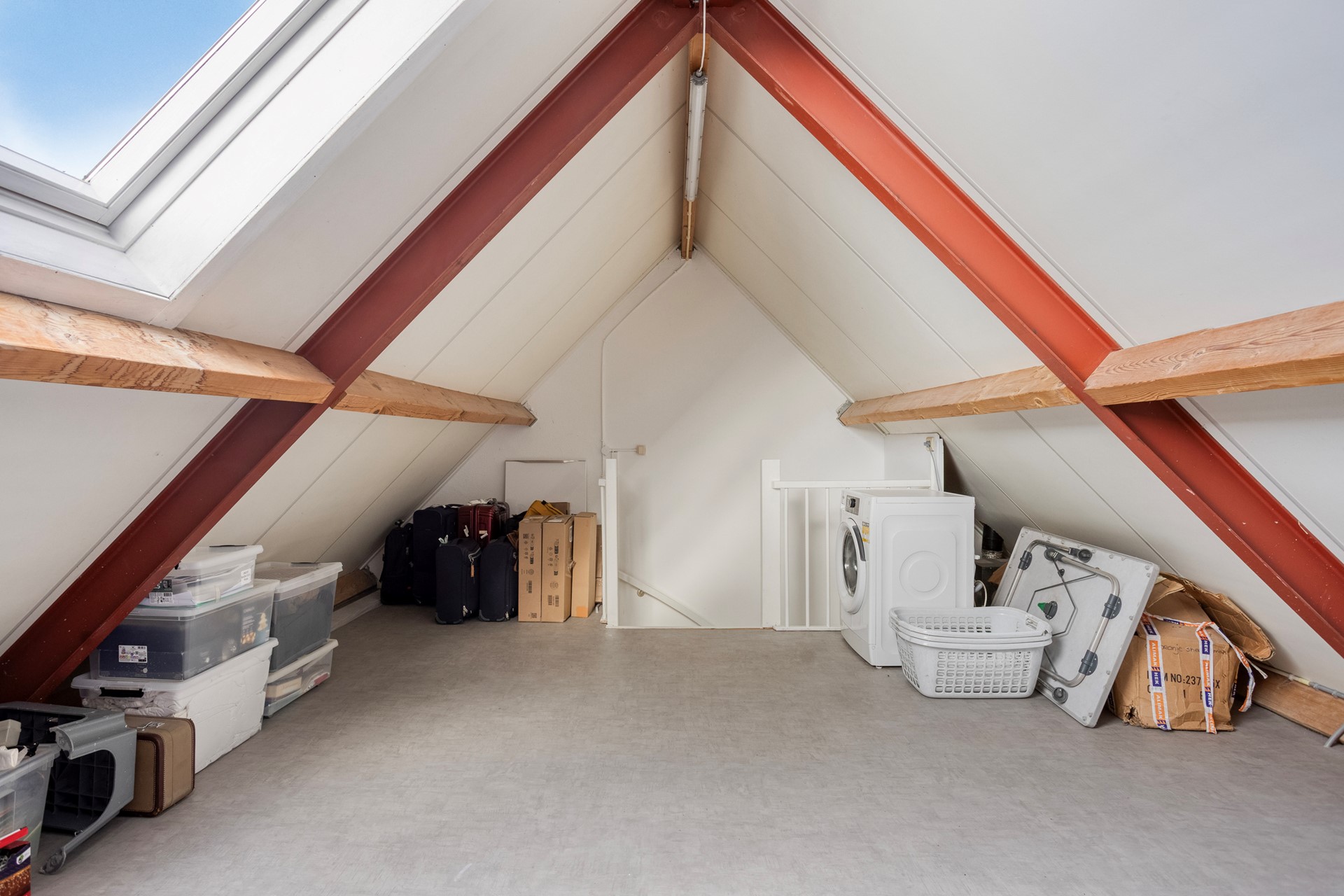 Via een vaste trap bereik je de tweede verdieping met voorzolder en een royale zolderkamer met Velux dakraam. Op deze verdieping bevinden zich tevens de aansluitingen voor wasmachine en droger. De ruimte biedt de mogelijkheid om eenvoudig een volwaardige extra slaapkamer te realiseren.