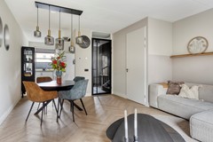Met een woonoppervlak van 100 m² biedt deze woning volop ruimte voor een modern gezinsleven. Strakke wanden en een pvc visgraatvloer in warme eikenhoutlook geven de begane grond een luxe uitstraling. Dankzij de vele ramen valt het licht royaal naar binnen en ontstaat een prettige, open sfeer.