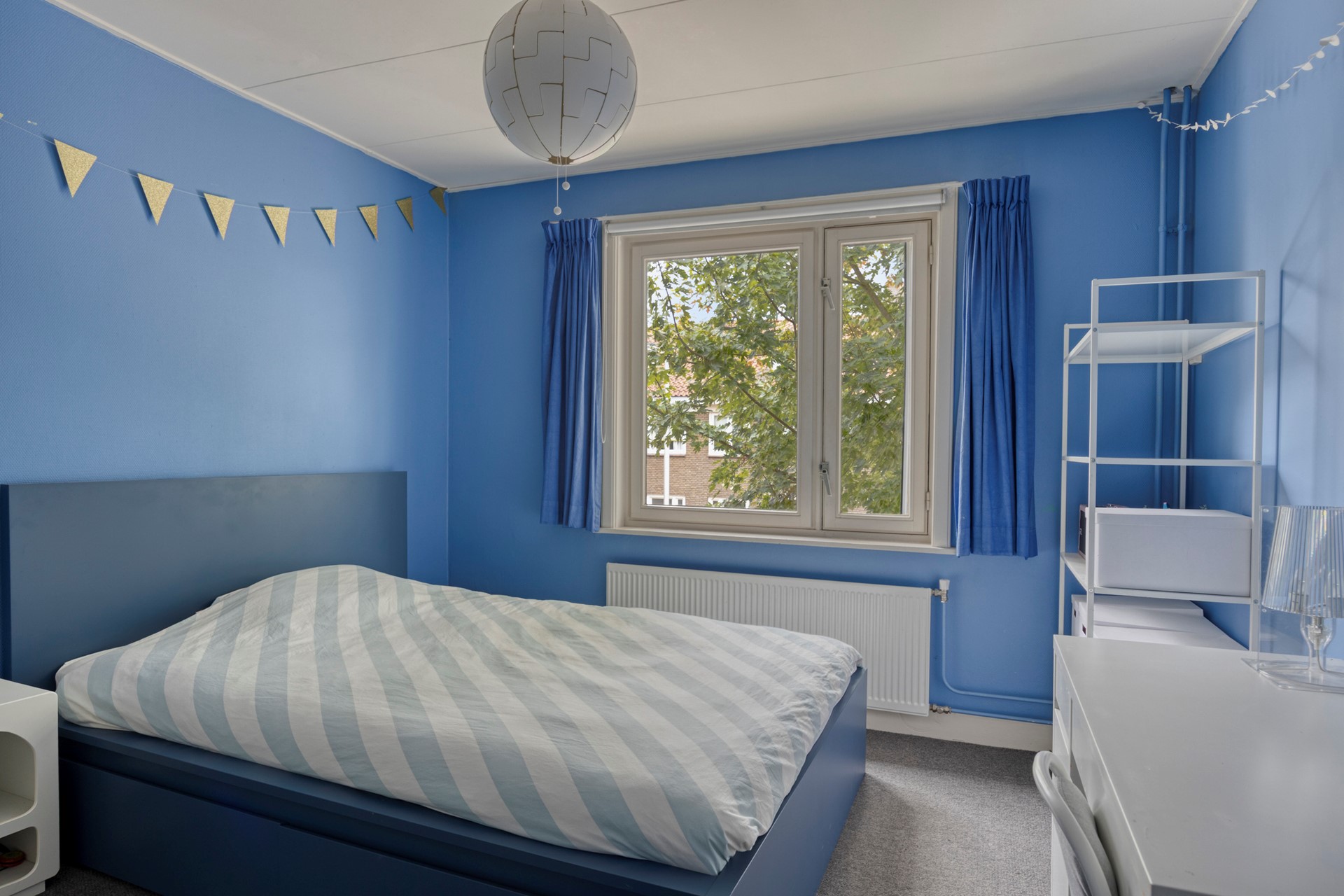 Op de tweede verdieping bevinden zich de derde en vierde slaapkamer. De kamer aan de voorzijde voorzien van een dakkapel en de kamer aan de achterzijde van een Velux dakraam. De overloop biedt extra bergruimte, wat de praktische kant van de woning compleet maakt. De zolder is bovendien voorzien van airconditioning.
