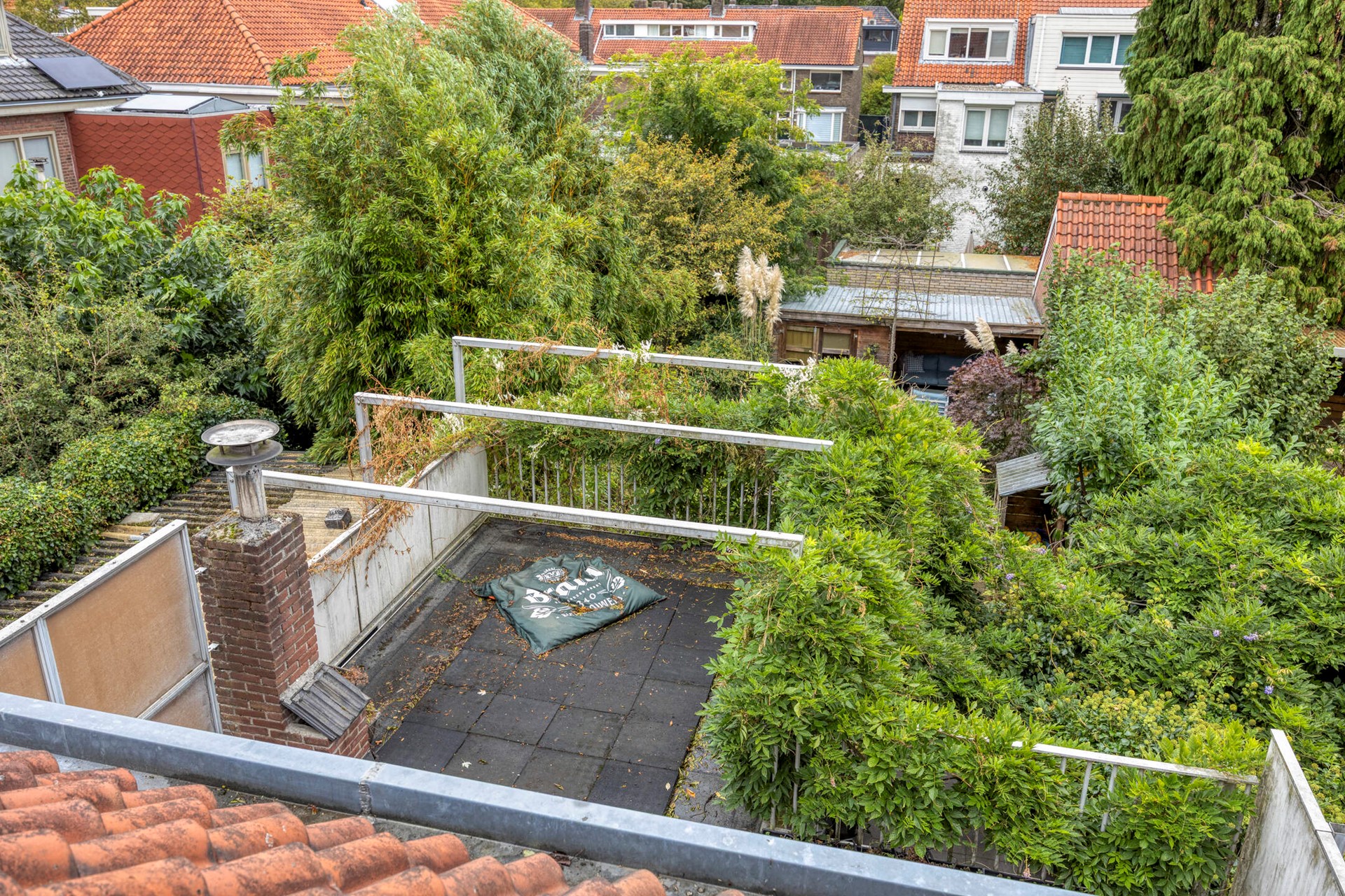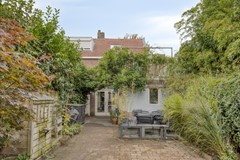 De zonnige, op het oosten gelegen tuin is onderhoudsvriendelijk ingericht, met een strakke basis van bestrating en volop groen. Blauwe regen en siergrassen zorgen voor een levendige, natuurlijke sfeer. Achterin vind je een gezellige overkapping en een berging. Deze tuin is perfect voor lange zomeravonden!