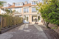 De diepe achtertuin op het oosten is een verlengstuk van je woonplezier. Met vernieuwde bestrating, een sfeervolle overkapping en een praktische stenen berging biedt deze tuin volop mogelijkheden. Of je nu wilt ontspannen, tuinieren of gezellig borrelen – hier kan het allemaal. De achterom maakt het plaatje compleet.
