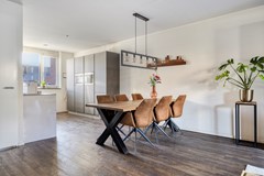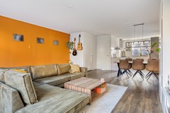 Bij binnenkomst word je direct verwelkomd door een warme en moderne uitstraling. Over de gehele begane grond ligt een donkere houtlook PVC vloer die zorgt voor een rustige en stijlvolle basis. De ruime en lichte woonkamer biedt volop mogelijkheden voor een comfortabele zithoek en een royale eettafel. Dankzij de prettige lichtinval voelt de ruimte open en uitnodigend aan, een fijne plek om samen te komen met familie en vrienden.