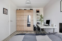 Ook de tweede verdieping biedt volop ruimte met twee royale slaapkamers. Daarnaast is er een aparte wasruimte, waar zich tevens de technische installaties bevinden. Deze verdieping is flexibel in te delen en uitstekend geschikt als extra slaapkamers, werkkamer of hobbyruimte.
