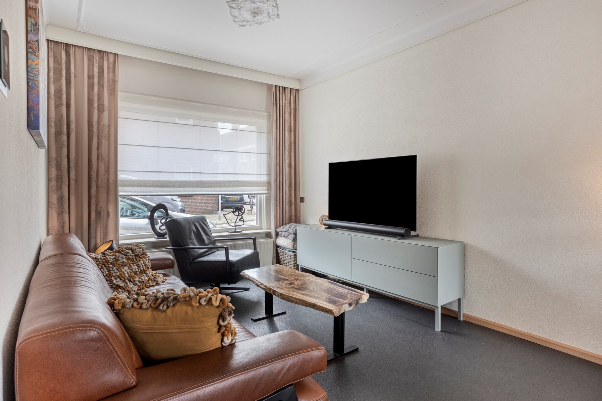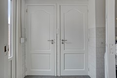 De voordeur met zijn sierlijke vensters laat meteen zien wat deze woning belooft: licht, sfeer en karakter. Zodra je binnenkomt, word je omarmd door een warme ambiance. De hal leidt je soepel door naar de woonkamer, waar de eerste indruk meteen voelt als thuiskomen.