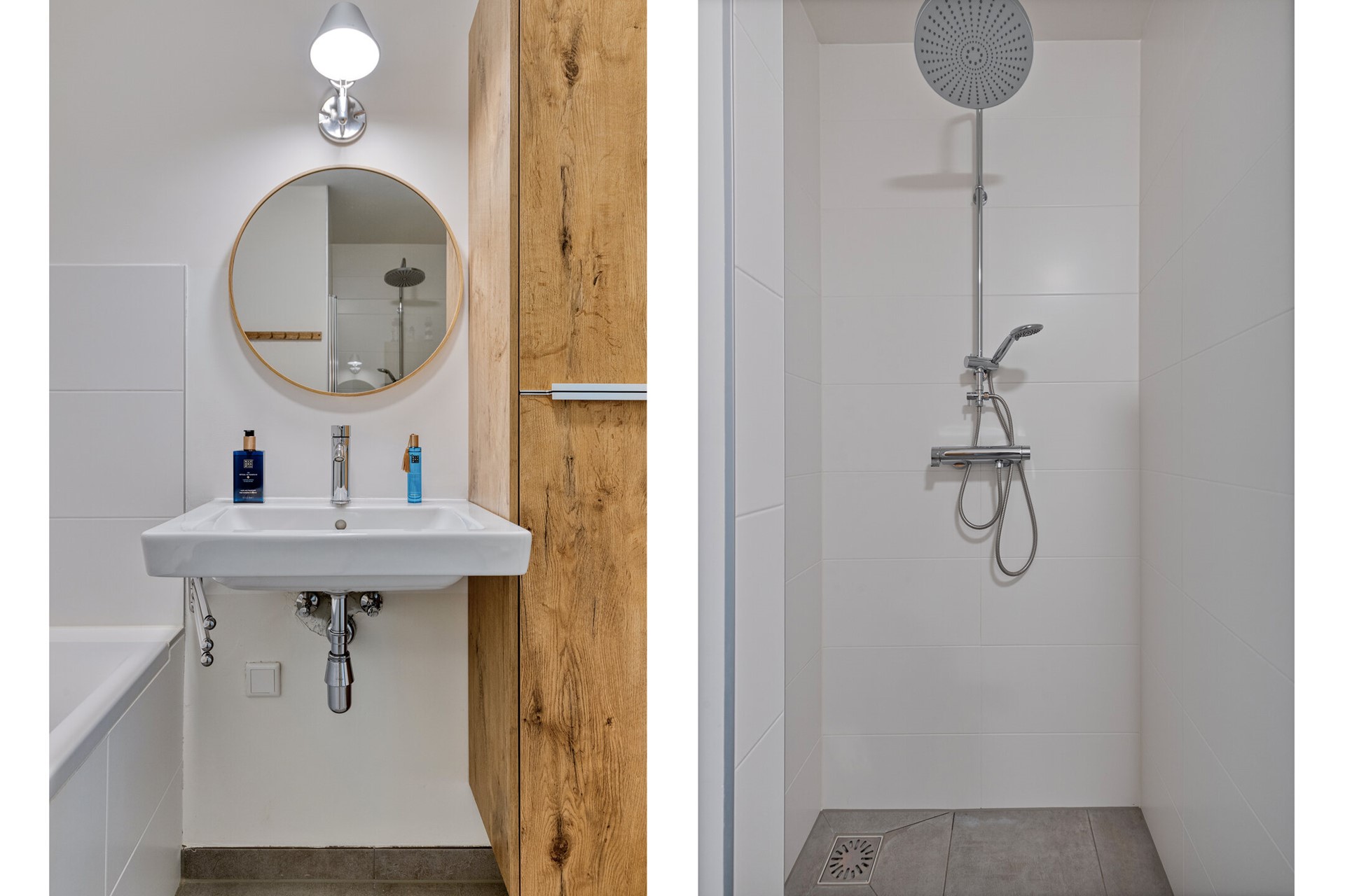 De woning beschikt over een semi-bungalow indeling met een slaapkamer en badkamer op de begane grond. Ideaal voor wie toekomstbestendig wil wonen of gewoon houdt van comfort. De badkamer is stijlvol betegeld en voorzien van een ligbad, inloopdouche en wastafel — een plek om de dag ontspannen te beginnen of juist rustig af te sluiten.