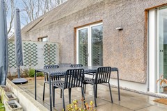 Het zonnige terras van ca. 20 m² ligt perfect op het zuiden. Een heerlijke plek om te genieten van lange zomeravonden, een goed boek of een gezellige borrel met vrienden, met uitzicht op het groen en veel privacy.