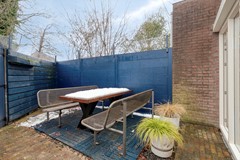 De achtertuin is gelegen op het westen, waardoor je tot laat in de avond van de zon kunt genieten. De tuin is volledig bestraat en daardoor heerlijk onderhoudsvrij. Dankzij de eigen achterom is de tuin ook praktisch in gebruik – ideaal voor fietsen of een snelle toegang.