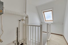 De tweede verdieping verrast met een voorzolder en een derde slaapkamer. Hier vind je de aansluitingen voor wasmachine en droger, evenals de mechanische ventilatie-installatie. Dankzij twee dakramen valt ook hier veel licht binnen, terwijl de knieschotten zorgen voor extra opbergruimte. Deze verdieping is ideaal als tienerkamer, werkkamer of hobbyruimte.