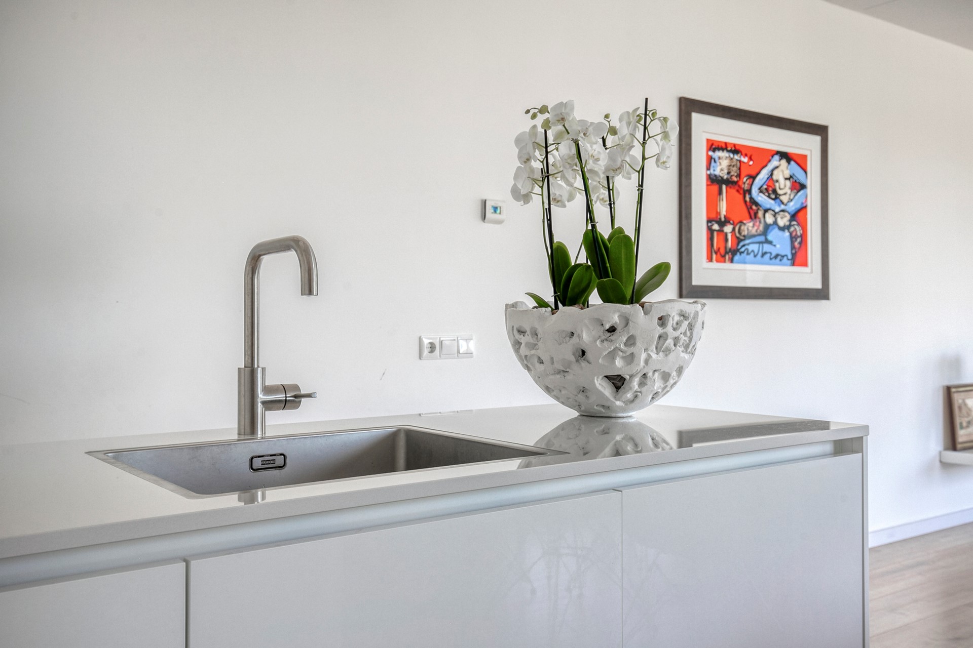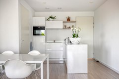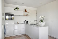 De open keuken (2024) bevindt zich bij binnenkomst aan de rechterzijde van de living en heeft een moderne warme uitstraling. De keuken is van alle gemakken voorzien en beschikt over de nieuwste Bora inductie kookplaat met kookveldafzuiging, een vaatwasser, een combi-oven op ooghoogte en een koelkast. Alle apparatuur is van AEG.