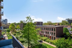 Het balkon ligt op het westen en is vanuit de woonkamer bereikbaar. Vanaf het balkon kijk je mooi uit over de Kempenaarplaats naar de Piushaven.