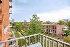 Het balkon ligt op het westen en is vanuit de woonkamer bereikbaar. Vanaf het balkon kijk je mooi uit over de Kempenaarplaats, naar de Piushaven en de rest van Tilburg. Door de ligging geniet je hier het hele jaar door van een prachtige ondergaande zon.
