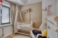 Vanuit de overloop met een klein niveauverschil heb je toegang tot vier slaapkamers, de moderne badkamer en een praktische berging met opstelling CV-ketel en aansluitingen voor de wasapparatuur. Alle ruimtes, met uitzondering van de badkamer, zijn vergelijkbaar afgewerkt met een fraaie laminaatvloer, spuitwerk wanden en plafonds.