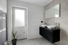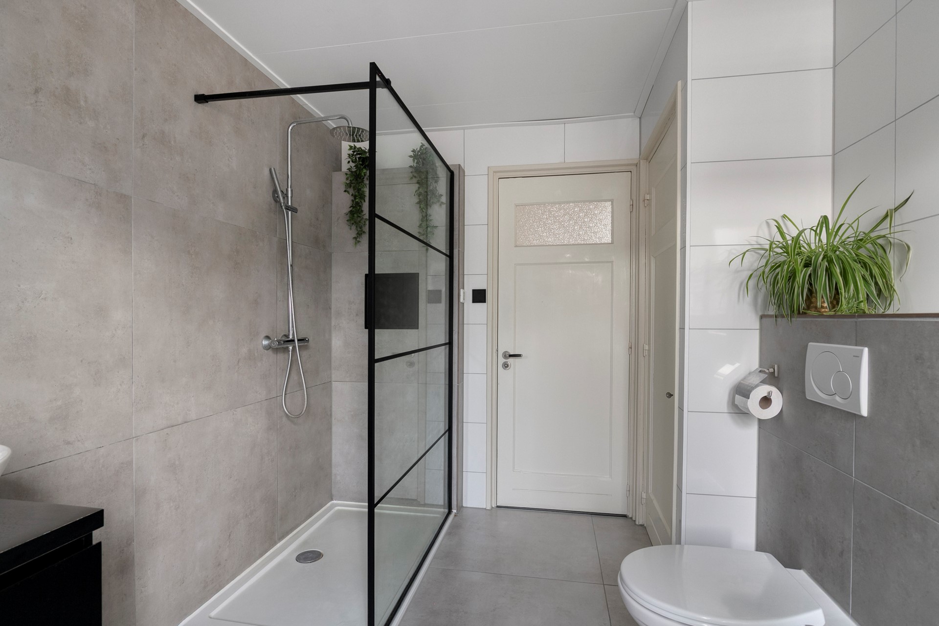 De eerste verdieping telt twee ruime slaapkamers, waaronder een extra ruime en comfortabele masterbedroom. Hier vind je ook de moderne badkamer: gerenoveerd in 2021 en uitgerust met een inloopdouche, dubbele wastafel, toilet, mechanische ventilatie en radiator. Een heerlijke plek om de dag ontspannen te beginnen of juist in alle rust af te sluiten. De badkamer biedt bovendien toegang tot het balkon, waar je even kunt genieten van de buitenlucht. De voormalige badkamer is slim omgevormd tot een praktische wasruimte met plek voor wasapparatuur, de cv-ketel en de omvormer van de zonnepanelen.