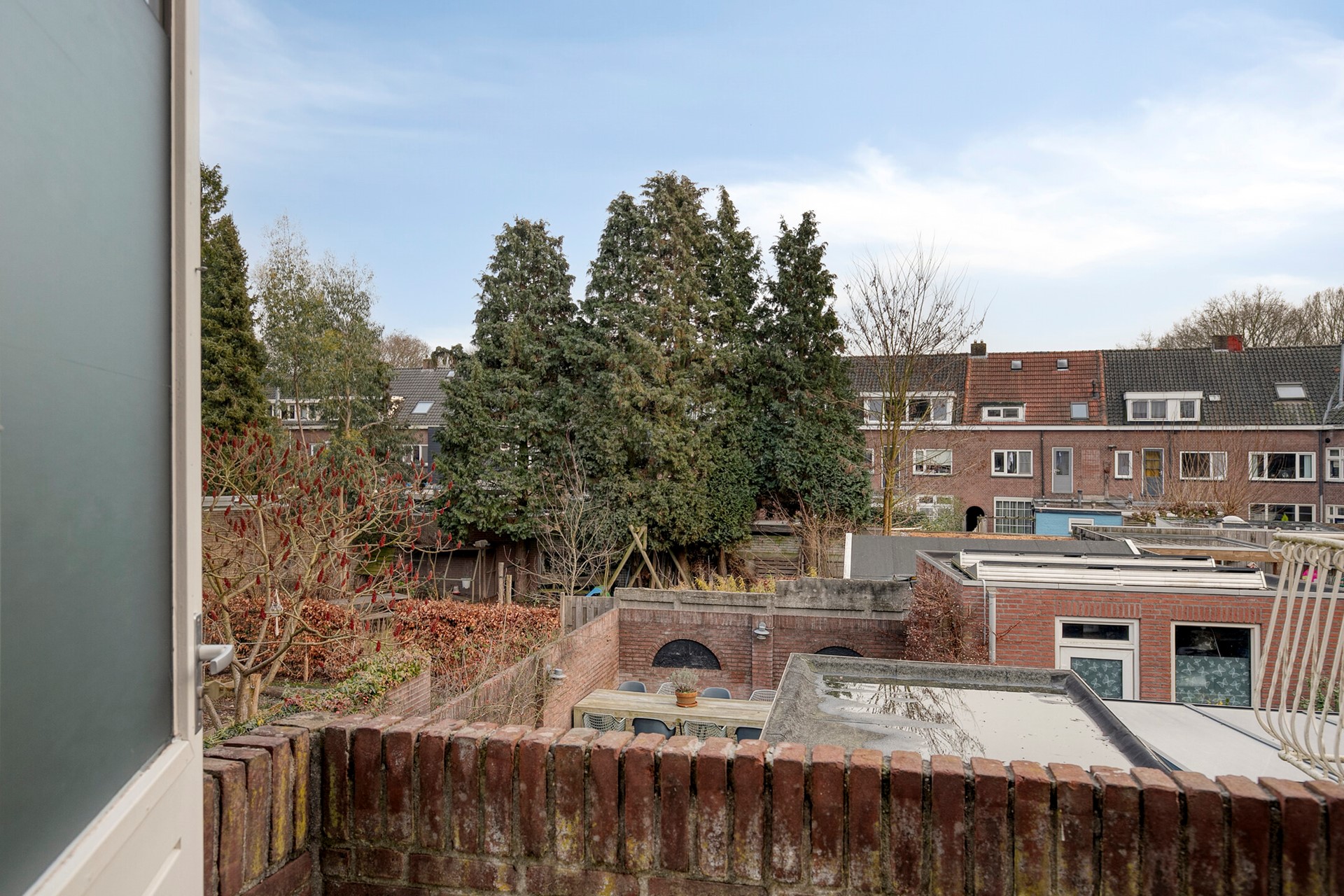De achtertuin is een heerlijke plek om te ontspannen. Gelegen op het zuidoosten geniet je hier volop van de zon, terwijl de grote bomen achter de tuin zorgen voor optimale privacy. De tuin is voorzien van een overkapping, waardoor je hier vrijwel het hele jaar comfortabel buiten kunt zitten. Daarnaast is er een stenen berging met elektra en een praktische achterom met dubbele poortdeur — ideaal voor fietsen, scooters, motoren of wanneer je een gezellig tuinfeest organiseert. Hier ervaar je het echte buitengevoel, midden in de stad, met alle privacy die je wenst.