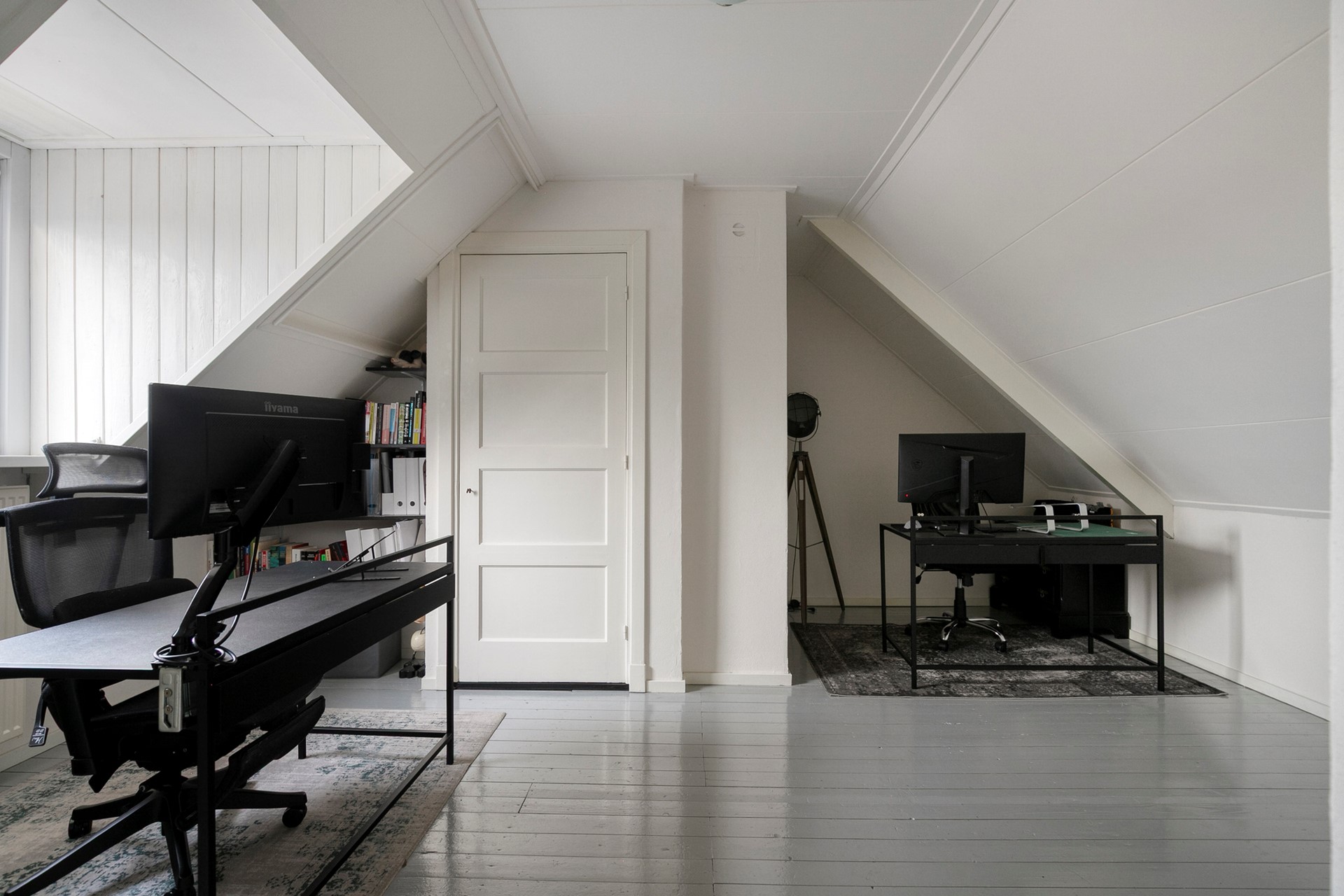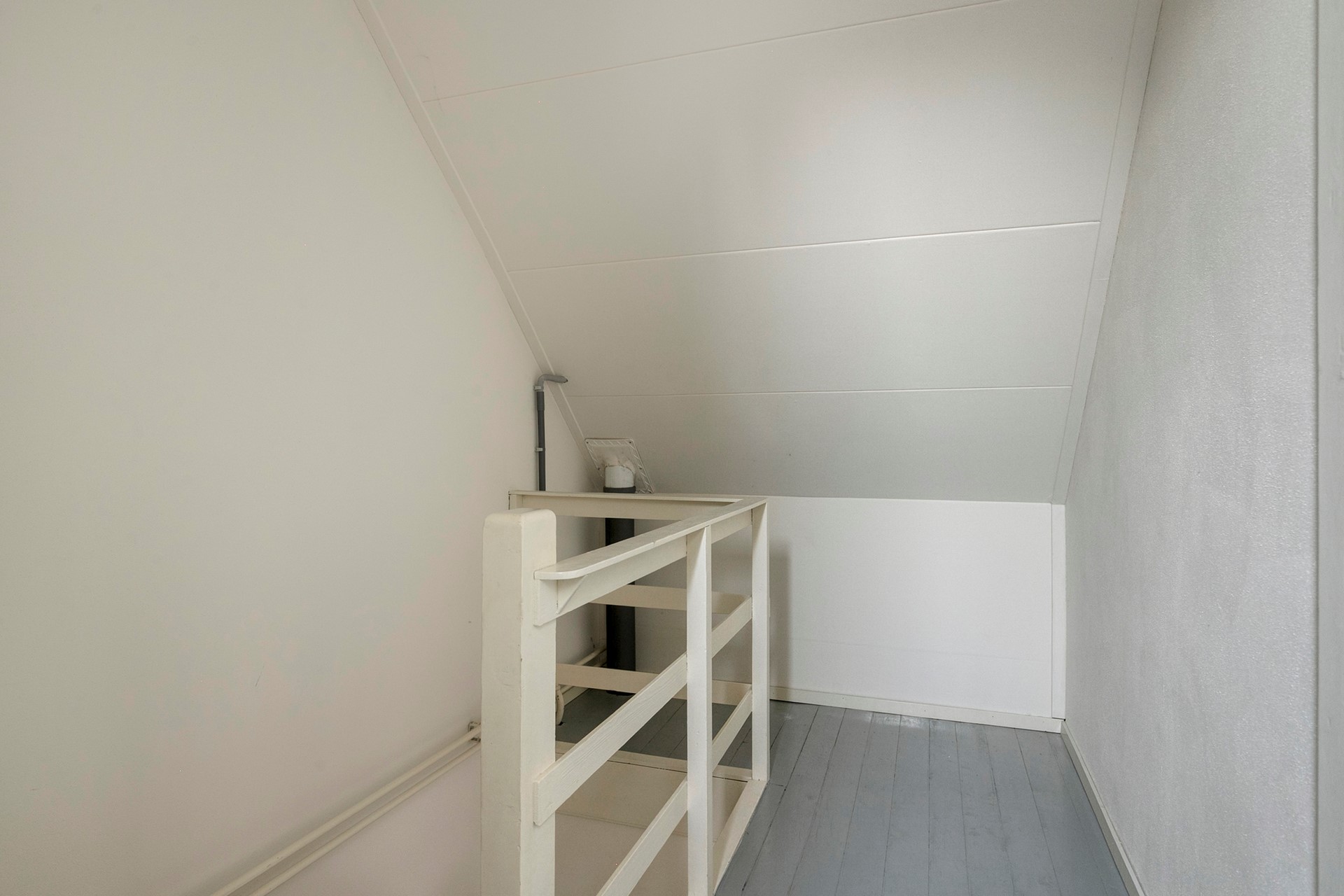 De vaste trap brengt je naar de tweede verdieping: een verrassend ruime zolder met overloop, een aparte opbergruimte met dakkapel en volop mogelijkheden voor een extra slaapkamer, werkplek of hobbyruimte. Dankzij het daglicht en de karakteristieke balken voelt deze verdieping prettig en sfeervol aan.