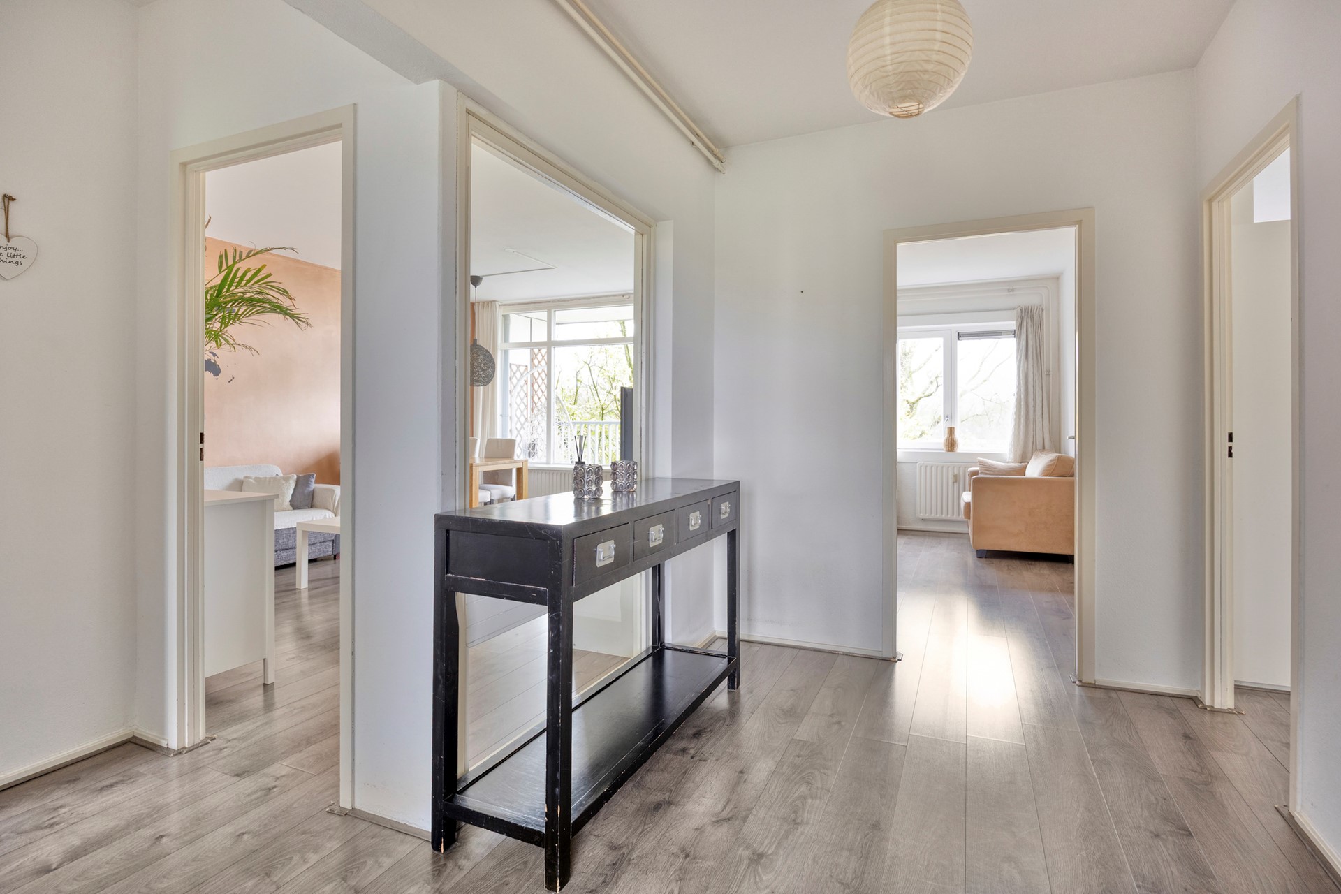 Het appartement beschikt over maar liefst drie slaapkamers, een zeldzaamheid in deze prijsklasse. De huidige indeling biedt alle flexibiliteit: een thuiskantoor, een kinderkamer, logeerkamer of hobbyruimte… het kan allemaal. De lichte laminaatvloer die door het gehele appartement is doorgelegd, zorgt voor een rustige en uniforme uitstraling.