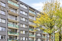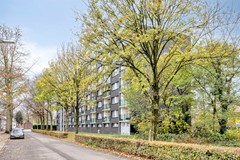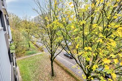 Dit appartement op de vierde verdieping biedt een oase van rust. Dankzij de hoogte geniet u aan de voorzijde altijd van het uitzicht op de hoge bomen, terwijl u aan de achterzijde vrij wegkijkt over het groene binnenterrein. Licht, lucht en ruimte vormen hier de basis van prettig wonen.