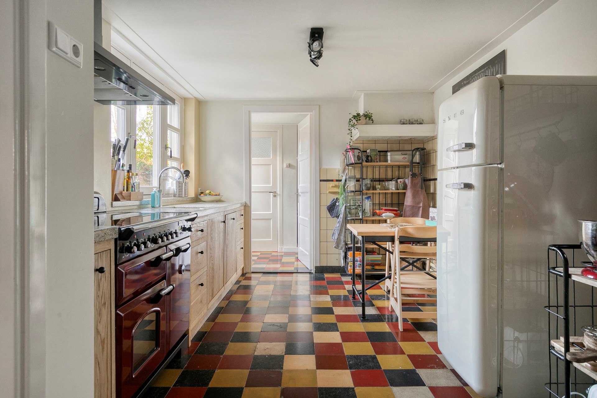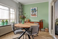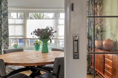De authentieke schouw en de praktische kelderkast geven de ruimte karakter en verwijzen subtiel naar het jaren ’30 verleden van de woning. De kelder is gerenoveerd en droog, waardoor deze uitstekend bruikbaar is als provisie- of bergruimte. Er is volop plaats voor een eettafel, waardoor dit zonder twijfel dé plek is voor lange diners, gezellige ochtenden en goede gesprekken.