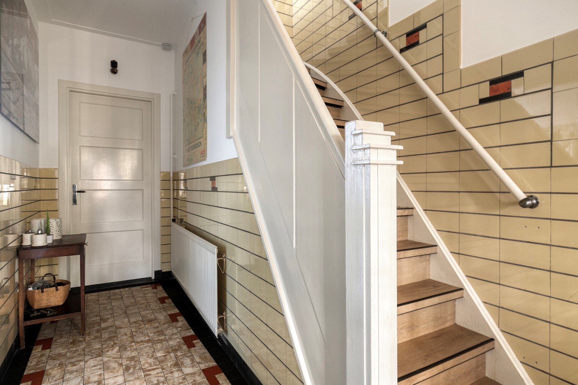 Zodra je de voordeur opent, voel je het: dit is geen doorsnee woning. De vestibule en de royale gang ademen direct de sfeer van weleer. Authentieke vloertegels, paneeldeuren, een karaktervolle trap, originele plafondlijsten – alles klopt. Hier begint het verhaal van een huis dat met liefde is bewoond en met zorg is vernieuwd.