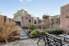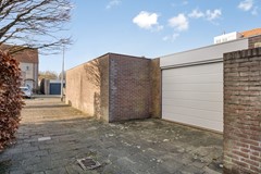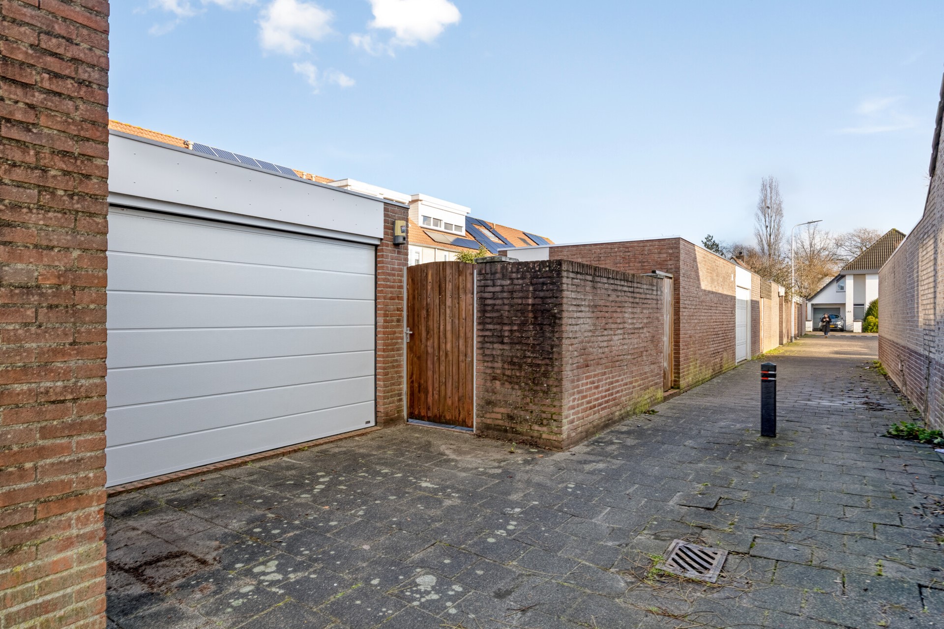 De achtertuin is een absolute verrassing: maar liefst 16,21 meter diep, gelegen op het zonnige zuiden en fraai aangelegd met een combinatie van tegels, groen en meerdere zitjes. Hier geniet je de hele dag van de zon, privacy en rust. Aan de achterzijde van de woning is een elektrisch zonnescherm geplaatst voor de warmere dagen. Achterin de tuin bevindt zich een vrijstaande stenen garage, voorzien van elektra en een elektrische deur — praktisch én comfortabel.