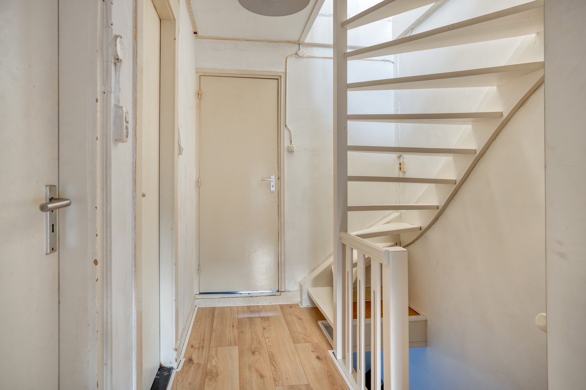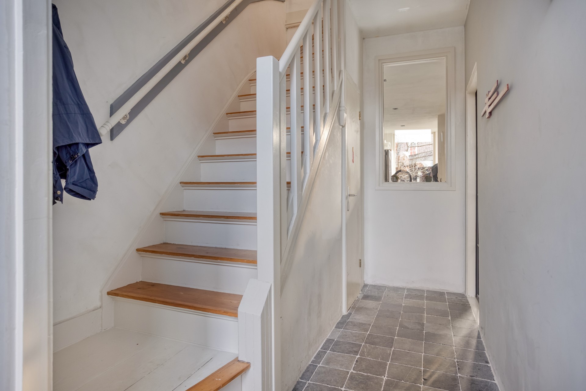 Achter de karakteristieke gevel schuilt een woning waar sfeer en comfort naadloos samenkomen. De entree verwelkomt je met een prachtige authentieke tegelvloer die direct de toon zet. De stalen deur met glas vormt een elegante overgang naar de woonkamer en laat het licht vrij doorstromen.