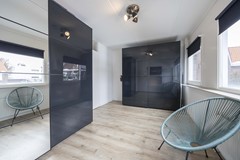 De tweede verdieping verrast met nog eens twee identieke royale slaapkamers, de slaapkamers aan de voorzijde zijn voorzien van openslaande deuren en een charmant Frans balkon. Hier vind je bovendien een ruime was-/bergruimte met aansluitingen voor wasmachine en droger, de CV-ketel (2016) en de omvormer voor de zonnepanelen.