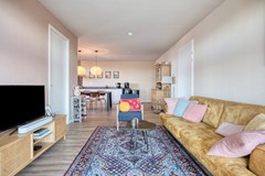 Zodra je de woonkamer binnenstapt, gebeurt het zonder dat je het doorhebt: je schouders zakken omlaag, je ademhaling vertraagt. Het is het licht. De enorme raampartijen aan de westzijde laten de zon gul naar binnen stromen en geven je een panoramisch uitzicht over de haven en de skyline van Tilburg. Hier kijk je elke dag uit over een stad die leeft—en toch ervaar je binnen een stille, ontspannen woonbeleving. De ruime opzet en instapklare staat van dit appartement maken het tot een bijzonder fijne plek om thuis te komen. De doorlopende houtlook PVC-vloer, de neutrale afwerkingen en de logische indeling creëren een warme, moderne basis waarin werkelijk iedereen zich direct op zijn gemak voelt.