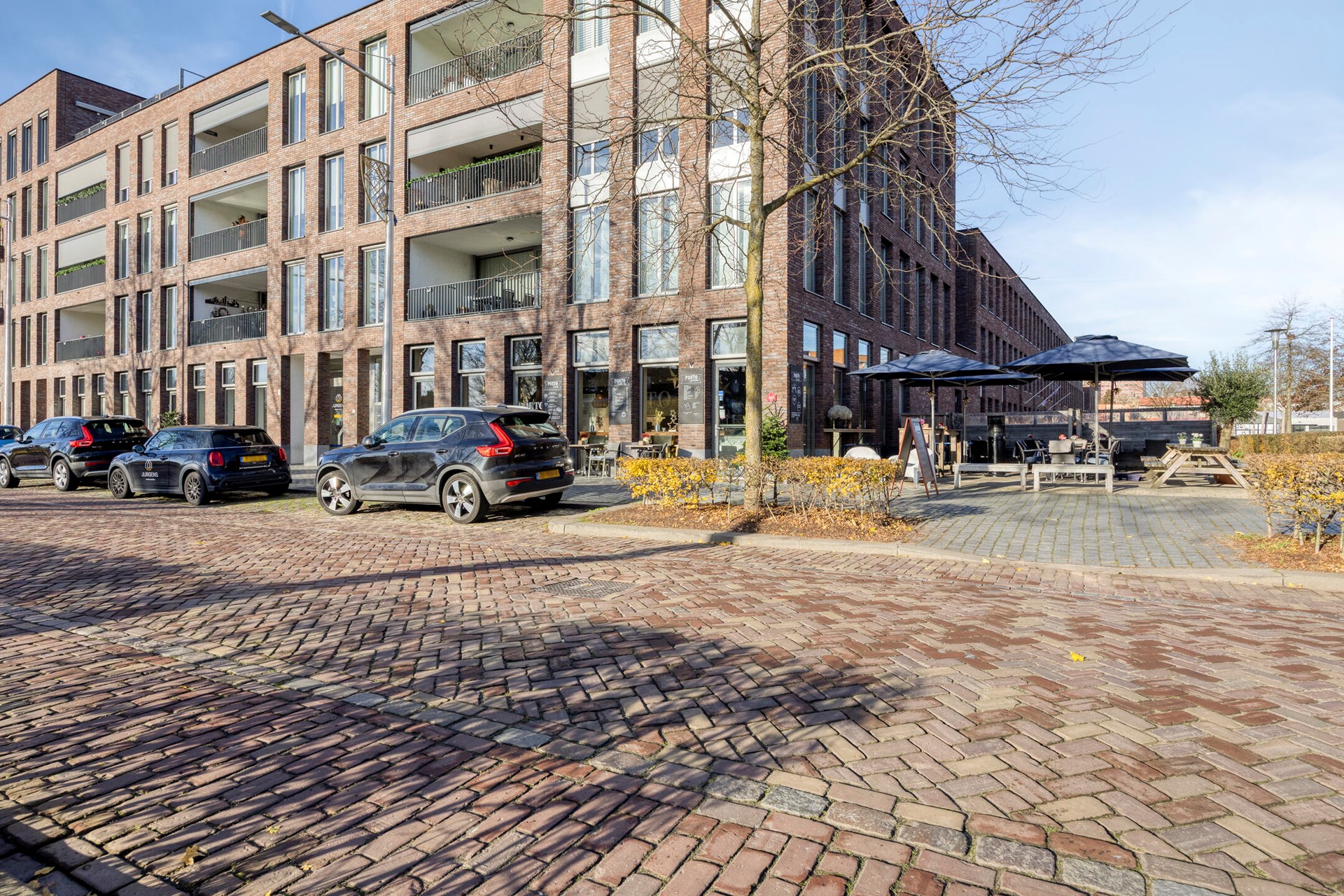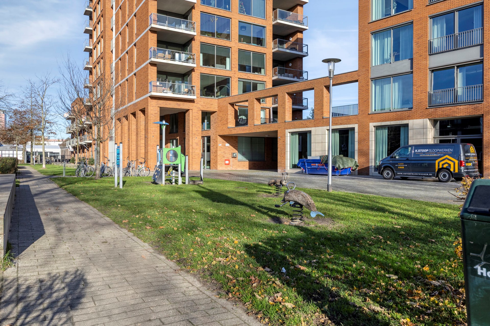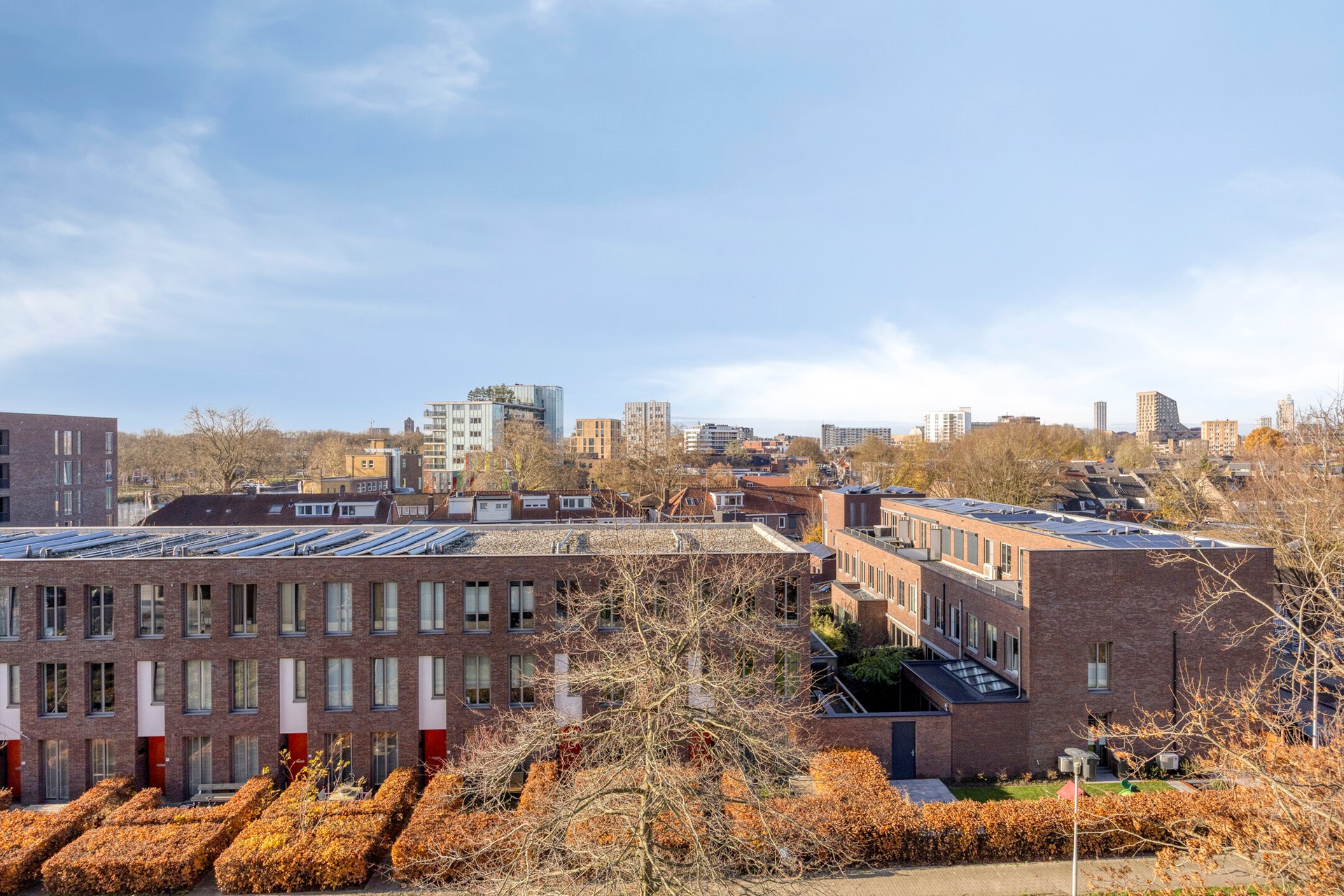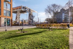 Toch is het óók een plek waar je heerlijk tot rust komt. Zodra je het autovrije binnengebied van De Havenmeester betreedt, voel je de luwte van een groene, verzorgde omgeving met een ontspannen karakter. Binnen slechts vijf minuten wandelen sta je in het prachtige Leijpark, en in een kwartier loop je zo het weidse groen van Moerenburg binnen—een unieke combinatie die maar weinig stadswijken kunnen bieden.