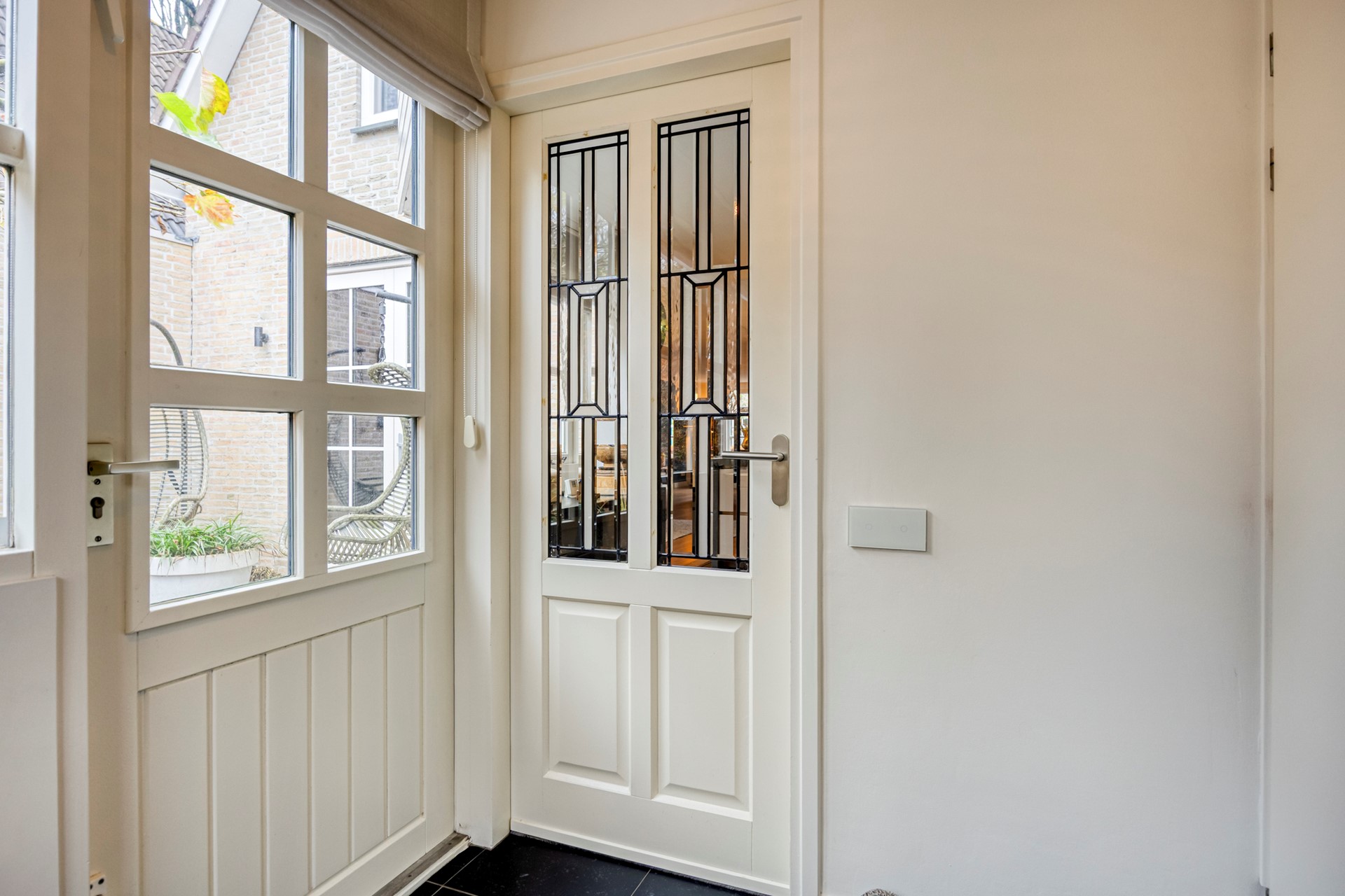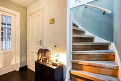 Je komt binnen via de eigen oprit aan de zijkant van het huis. De hal voelt direct royaal en verzorgd. Alles klopt, alles ademt kwaliteit.