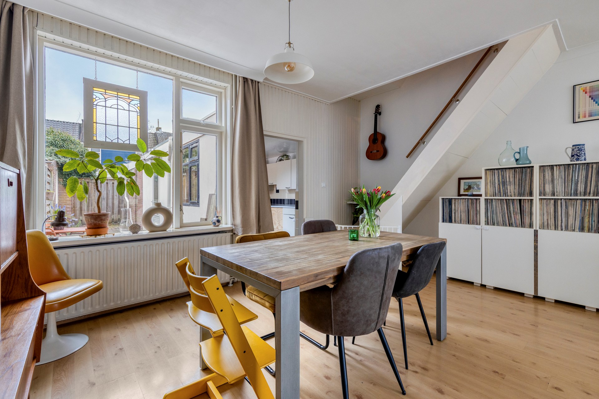 De woonkamer vormt zonder twijfel het kloppend hart van het huis. Dankzij de uitbouw aan de achterzijde is hier een verrassend ruime leefruimte ontstaan, waar wonen, eten en samenzijn moeiteloos samenkomen. De indeling biedt alle ruimte voor een royale eettafel voor lange avonden met vrienden én een comfortabele zithoek om tot rust te komen na een drukke dag. De houtlook laminaatvloer zorgt voor een warme, rustige basis en verbindt de verschillende functies in de ruimte op een natuurlijke manier. Aan de achterzijde kijk je uit op de beschutte binnenplaats, wat zorgt voor privacy en een intieme sfeer. Een extra pluspunt: het raam biedt de mogelijkheid om te worden verlaagd tot aan de grond, waardoor binnen en buiten straks naadloos in elkaar overlopen.