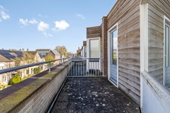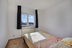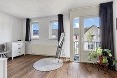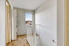 De eerste verdieping biedt twee royale slaapkamers, elk met een prettige lichtinval en een rustige uitstraling. De slaapkamer aan de voorzijde beschikt over een balkon. Beide slaapkamers zijn netjes afgewerkt met een houtlook laminaatvloer die mooi doorloopt naar de overloop. De badkamer is verzorgd en volledig betegeld tot aan het plafond, voorzien van een ligbad, wastafel en vrijhangend toilet – een plek om heerlijk tot rust te komen.