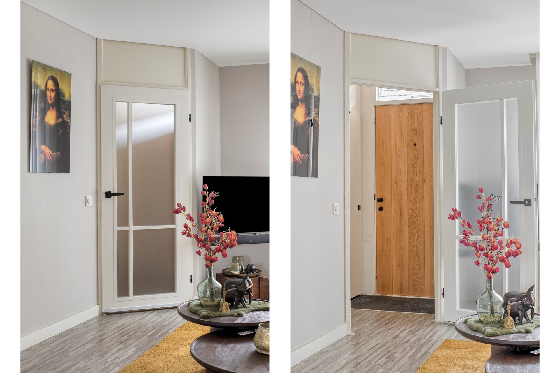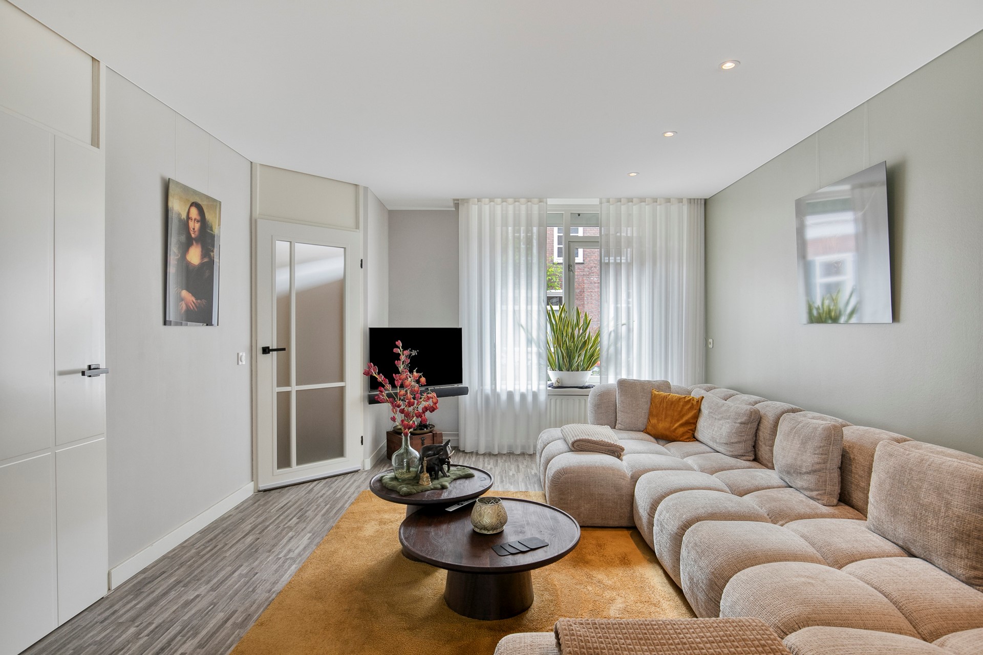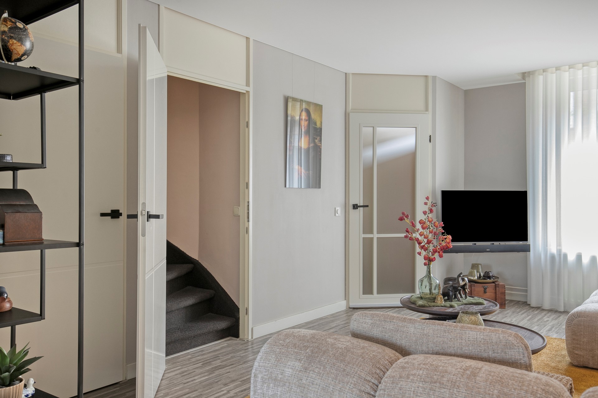 Achter de voordeur ontvouwt zich een woning die direct een gevoel van thuiskomen geeft. De hal met toilet en vernieuwde meterkast vormt een verzorgde entree, waarna je wordt meegenomen naar de leefruimtes die stuk voor stuk met oog voor detail zijn afgewerkt.