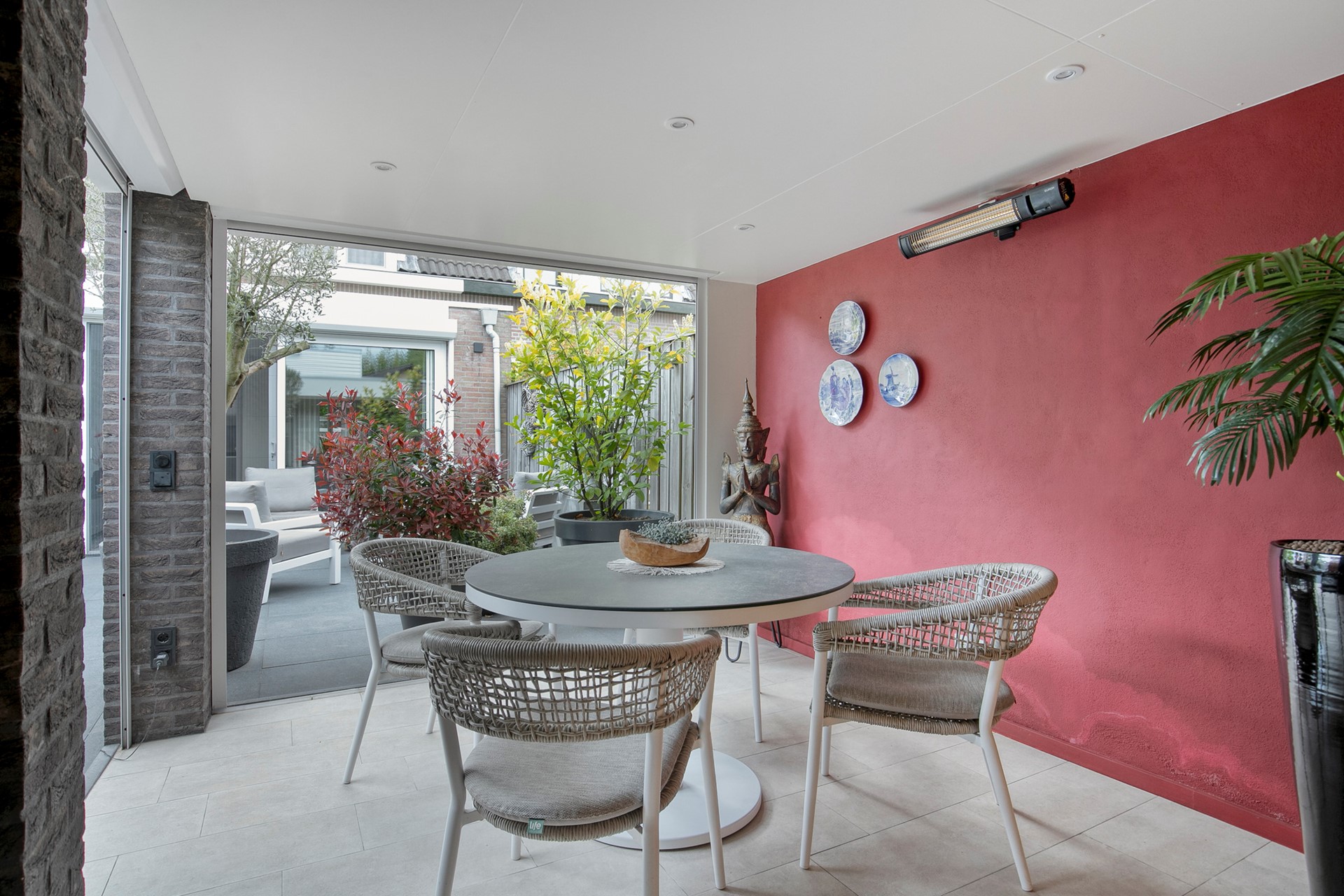 De fraai aangelegde achtertuin vormt een zeldzame verrassing midden in de stad. Dankzij de optimale privacy en de doordachte inrichting lopen binnen en buiten hier naadloos in elkaar over. Onder de overkapping met rolluiken geniet je het hele jaar door van het buitenleven. De buitendouche en wastafel geven een heerlijk vakantiegevoel, terwijl de Finse sauna – verwarmbaar tot circa 100 graden – uitnodigt tot pure ontspanning na een lange dag. De intense warmte stimuleert het zweten, waardoor de poriën worden gereinigd en de huid een gezonde, stralende uitstraling krijgt. Hier creëer je je eigen spa-moment, gewoon in je achtertuin – ideaal om te ontspannen, tot rust te komen en even helemaal los te komen van de dagelijkse drukte.
