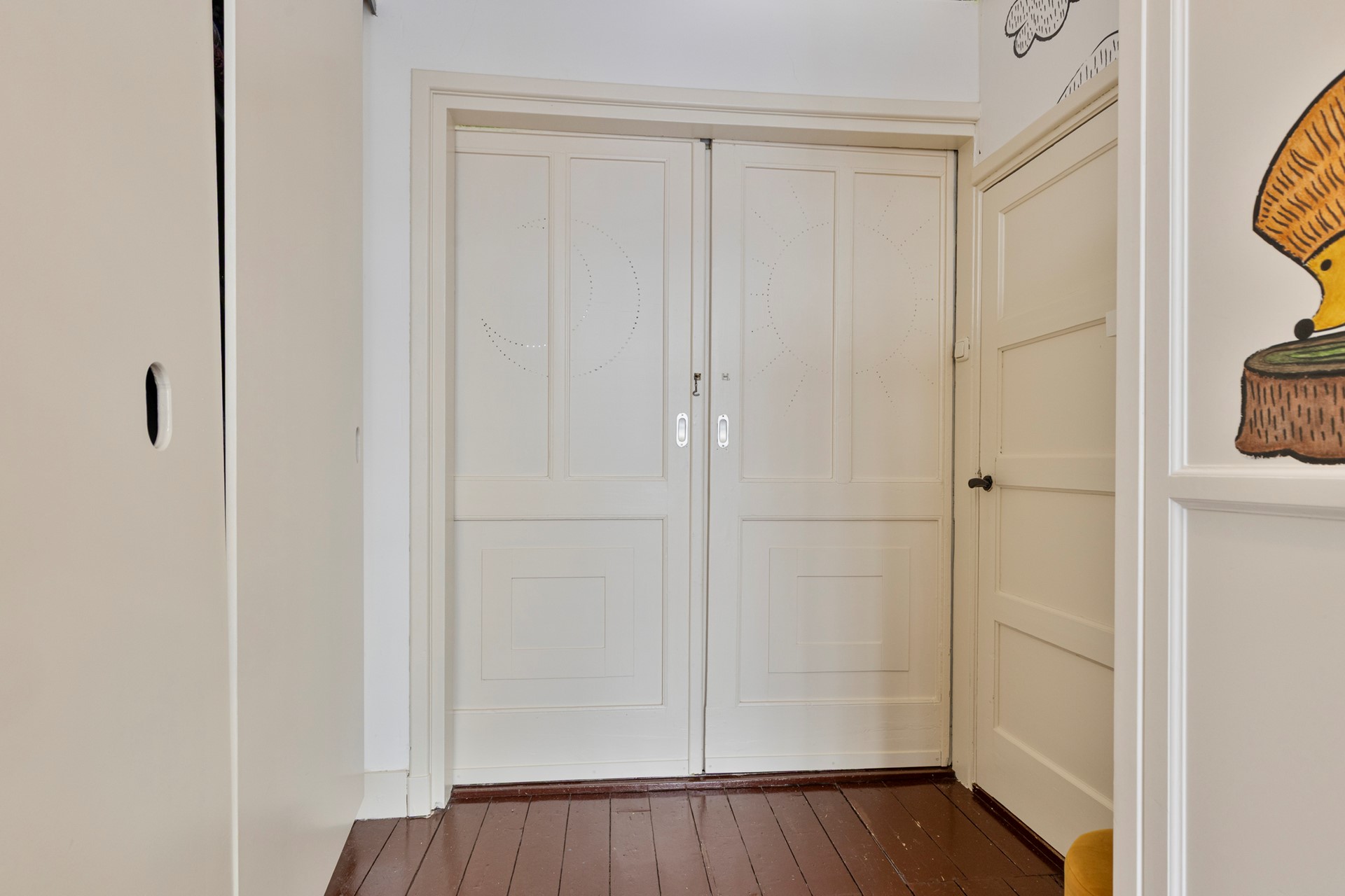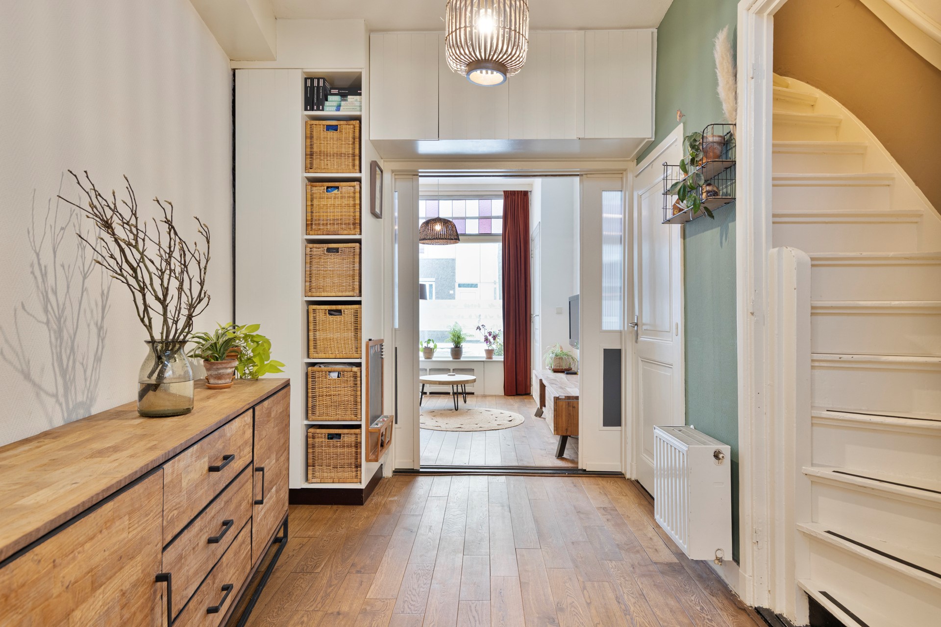 Het authentieke verhaal begint al bij binnenkomst. De sfeervolle entree verwelkomt je met een prachtige terrazzo vloer en glas-in-loodramen boven de voordeur. Details die je zelden nog tegenkomt, maar hier met zorg zijn behouden en gekoesterd.