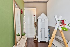 Op de eerste verdieping vind je twee slaapkamers en een verrassend ruime overloop met kastenwand.