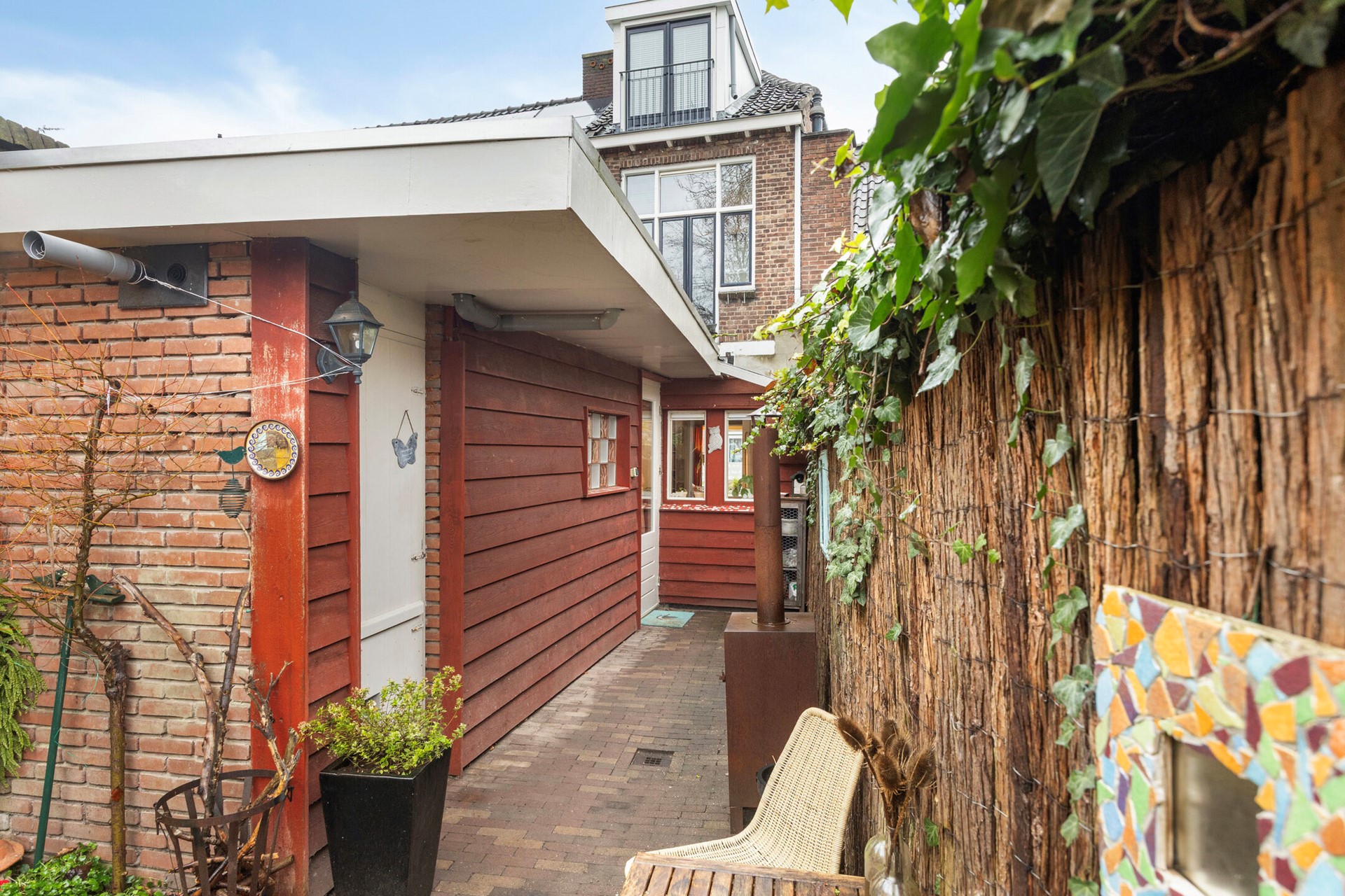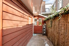 De onderhoudsvriendelijke binnenplaats op het zuiden is een heerlijke plek om buiten te zitten. Met een praktische berging achter de woning is ook aan gemak gedacht. Hier geniet je in alle rust, midden in de stad.