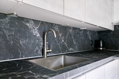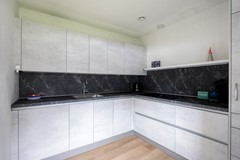 De halfopen keuken, vernieuwd in 2025, is modern, fris en praktisch ingericht in een hoekopstelling. Dankzij het raam valt er prettig daglicht naar binnen, wat koken hier extra fijn maakt. De keuken is voorzien van diverse inbouwapparatuur, waaronder een vaatwasser, een kookplaat met meerdere zones en kookveldafzuiging, en een koelkast. Een plek waar functionaliteit en comfort elkaar ontmoeten.