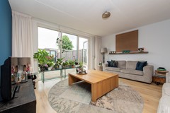 Aan de achterzijde bevindt zich de lichte zitkamer met grote ramen en een directe verbinding naar de tuin via een loopdeur met hor. Tussenin? De moderne keuken uit 2013, voorzien van alle gemakken zoals een keramische kookplaat, combimagnetron, vaatwasser, koelkast en vriezer. Witte greeploze kasten zorgen voor een strakke look.