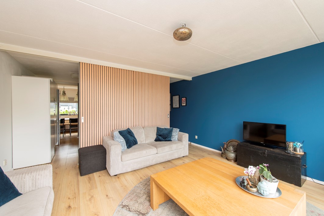 Dankzij slimme schuifdeuren kun je de ruimtes afsluiten, zodat je altijd de sfeer kunt creëren die jij wilt. Praktisch detail: er is ook een toilet, trapopgang en een vaste kast met de meterkast en stadsverwarming.