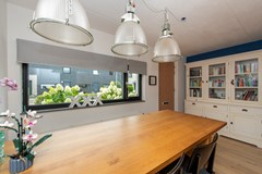 Geen standaard halletje, maar meteen sfeer zodra je binnenkomt. Je stapt binnen in de gezellige eetkamer, waar je moeiteloos een lange eettafel kwijt kunt. Perfect voor etentjes met vrienden of gewoon een uitgebreid ontbijt op zondagochtend.