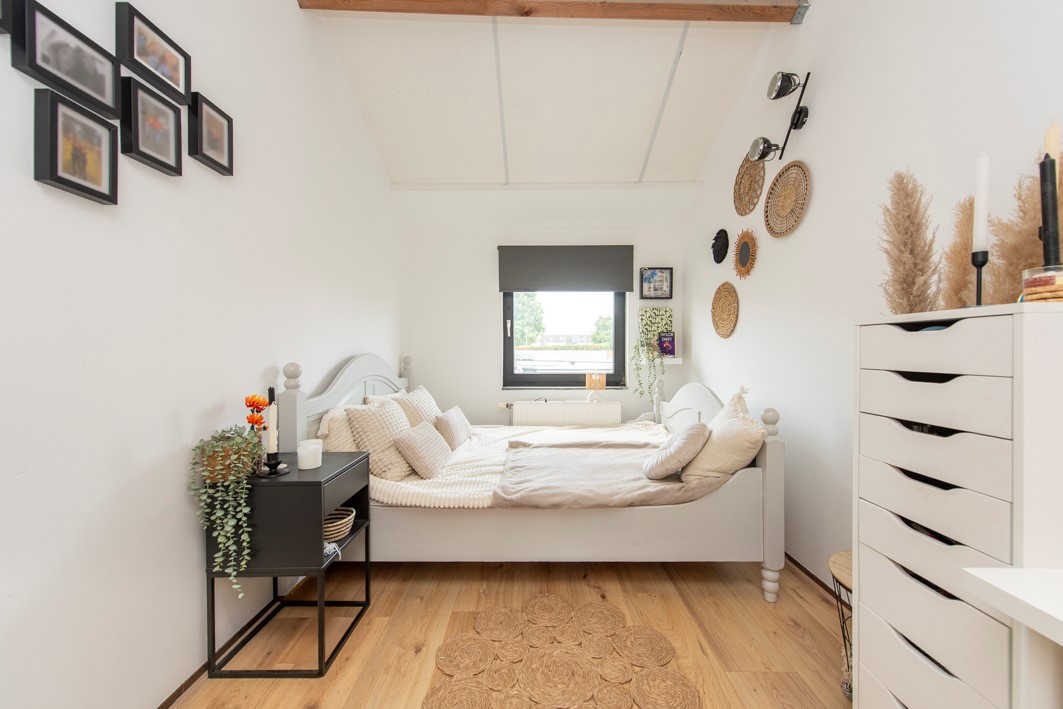 Via een vaste trap bereik je de tweede verdieping, waar je verrast wordt door een royale vierde slaapkamer. Dankzij de twee Velux dakramen is het hier heerlijk licht, ideaal als hoofdslaapkamer, werkkamer of logeerruimte.